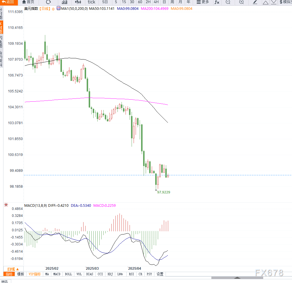 周二,美元在早盘交易中仅小幅回升,未能大幅收复前一交易日的重挫跌幅。 ![]() 澳大利亚联邦银行(CBA)外汇策略师Carol Kong表示:“鉴于各种矛盾信号,我认为短期内达成协议的可能性非常低。” 同时,她补充指出:“美国整体关税政策极为混乱,市场对此非常反感,不过确实出现了一些迹象,表明最糟糕的阶段可能已经过去。” 尽管目前贸易谈判缺乏实质性进展,但双方在最近几天似乎都在软化各自的立场,美国方面表示愿意部分削减关税,而亚洲国家则豁免了部分美国产品的125%关税。 在主要货币对方面,欧元下跌0.15%,报1.1404美元,但本月仍有望录得近15年来最大月度涨幅,投资者纷纷避开美国资产,转向欧洲资产。 本周市场还在关注密集的美国经济数据发布,这些数据将成为评估特朗普贸易政策实际冲击的早期信号。尤其是周五的非农就业报告、第一季度经济增长初值数据以及联邦储备偏爱的核心PCE通胀数据,备受市场关注。 Carol Kong还指出:“我认为美国经济数据会从这里开始进一步恶化。” “一旦疲软的数据公布出来,将进一步打压美元,因为目前投资者已不再把美元当成可靠的避险货币,它反而开始呈现风险资产的交易特征。” 从日线走势来看,美元指数(DXY)在接连下挫后,目前处于99附近震荡整理,整体仍呈弱势格局。短期5日与10日均线继续下行,且死叉压制明显,反弹受限于99.40区域;20日均线由上行转为走平,表明中期趋势也在逐步转弱。 技术指标方面,RSI(14)目前位于38附近,接近超卖区域,短期虽有技术性反弹需求,但力度有限;MACD指标绿柱持续放大,快慢线延续下行态势,反映空头动能依然占优。 下方关键支撑位关注98.60一线,一旦失守将打开进一步下探空间至98关口;上方初步阻力位则在99.40-99.60区域。整体来看,美元指数日线结构偏空,短线反弹高度有限,趋势仍倾向震荡下行。 ![]() 在全球贸易不确定性反复及美国经济数据疲软预期双重压力下,美元的传统避险地位受到挑战。日线技术面进一步印证了基本面偏空的趋势,美元指数或将在短期内继续测试关键支撑区域。 需警惕若美国数据持续疲软,美元可能进入更大级别的下行周期。 ![]() |