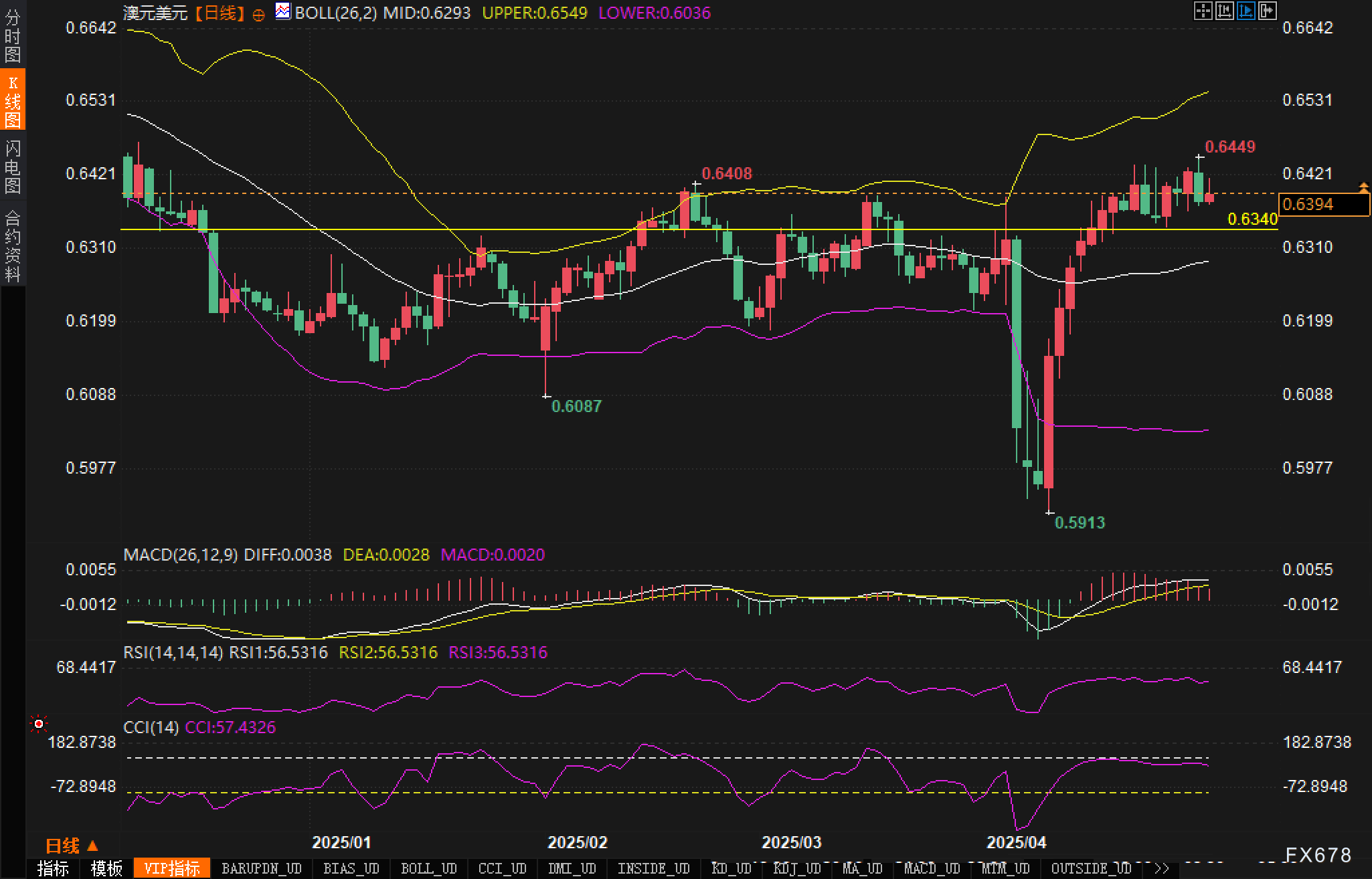 周三(4月30日),澳元兑美元汇价呈现出上行动能,在澳大利亚第一季度CPI数据公布后获得提振。通胀数据显示,澳大利亚的核心通胀首次回落至澳洲联储2-3%的目标区间内,这为澳洲联储在未来几个月降息打开了空间。 ![]() 澳大利亚统计局周三公布的数据显示,2025年第一季度消费者价格指数(CPI)环比上涨0.9%,高于前一季度0.2%的增幅,也超过市场预期的0.8%。同时,年度CPI保持在2.4%不变,高于预期的2.2%。值得注意的是,澳洲联储首选的核心通胀指标:经修剪平均CPI同比增长2.9%,从前值3.3%明显回落,这是自2021年第四季度以来首次落入澳洲联储2-3%的目标区间。 服务业通胀因房租和保险成本下降而缓和,同比增长3.7%;而商品通胀则因食品和电力价格上涨而增至1.3%。渣打经济学家Nicholas Chia表示,澳洲联储可以从经修剪平均指标所反映的广泛价格压力缓解中获得安慰。目前市场预期澳洲联储将在5月20日的会议上降息25个基点,而之前的预期是澳洲联储将保持利率不变至第三季度。 美国总统特朗普宣布对汽车零部件关税进行为期两年的缓和,给予美国汽车制造商增加国内零部件生产的时间窗口。这一消息提振了市场信心,同时也推动了风险资产的流动,包括澳元。 技术面分析师解读: 从澳元兑美元的日线图来看,汇价目前展现出明显的反弹态势。在经历前期的深度回调后,汇价已从0.5913的低点强劲反弹,目前交投于0.6400附近。布林带指标显示,价格已重新回到中轨上方,这是技术面转强的重要信号。 ![]() 从支撑与阻力的角度分析,当前汇价已突破0.6340这一重要水平,该位置现在转变为重要支撑。上方面临的首个阻力位位于0.6420,若能有效突破,则可能进一步测试0.6450水平。下方支撑除0.6340外,还有0.6310和0.6200水平。 市场情绪观察 目前市场情绪正转向对澳元的积极面。首先,澳大利亚通胀数据进入目标区间释放了积极信号,尽管降息预期通常会削弱货币强度,但市场认为这次降息是为了预防性地应对全球贸易紧张局势对经济增长的影响,实际上是一种积极主动的措施。 多头市场情绪还得到了美国可能放松贸易政策的支撑,特朗普关于汽车零部件关税的声明被解读为贸易紧张局势可能缓和的信号。美元面临的压力也来自市场对美联储6月降息的预期升温,以及美联储年内可能实施多达100个基点降息的预期。 后市展望 短期展望(1-2周) 短期内,澳元兑美元有望保持偏强走势,目标指向0.6450-0.6500区域。技术面的金叉形态和日线突破趋势线的走势支持这一观点。然而,交易员关注即将公布的美国非农数据和澳大利亚5月劳动力市场报告,这些都将影响短期走势。 中期展望(1-2个月) 中期来看,汇价可能进入区间震荡格局。一方面,澳洲联储和美联储的降息路径将对汇价形成关键影响;另一方面,全球贸易局势的发展将左右市场风险情绪。若澳洲联储在5月率先降息,汇价可能在初期承压,但如美联储6月也开启降息周期,则汇价可能再度获得支撑,形成先抑后扬的走势。 从技术面看,0.6340-0.6550可能成为中期波动区间,关注布林带和移动平均线的变化。分析师认为,若汇价能在这一区间形成有效突破,则可能开启新的趋势性行情。 注:本文基本面内容据路孚特报道展开。 ![]() |