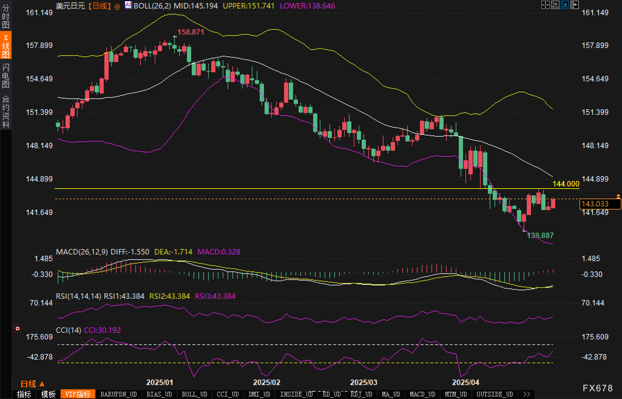 周三(4月30日),美元/日元汇价呈现上行态势,美市盘前交投于143附近,市场参与者正屏息等待日本央行(BoJ)周四的利率决议。受日本工业生产和零售销售数据低于预期的影响,日元对美元下跌,在G10货币中表现疲软。 ![]() 日本央行预计将在周四的政策会议上维持当前0.50%的利率水平不变,市场对此预期一致。值得注意的是,这将是主要央行在美国宣布关税计划后首次重新评估经济预测,日本央行发布的最新预测将格外重要。 同时,美日贸易谈判正在进行中,本周将持续至周末,这是谈判开始以来的第二轮会谈。市场消息显示,美日双方正在接近某种形式的贸易协议,这可能对汇价走势产生重大影响。 此外,美国不断变化的贸易政策导致美元整体走势疲软,并为欧元、日元和瑞郎提供支撑。美国总统特朗普周二发布行政命令,调整汽车关税政策,结合关税抵扣与零部件和材料关税减免,以减轻汽车关税带来的冲击。美国财政部长贝森特表示,美国政府在关税谈判方面取得进展,并指出即将与印度和韩国达成协议。 技术面分析师解读: 从日线图来看,美元/日元近期走势形成明显的下降通道,虽然最近从139.89的低点展开反弹,但反弹力度有限且已经开始停滞。当前价格正在布林带中轨附近盘整,上方面临144.21斐波那契38.2%回调位的重要阻力。 ![]() RSI指标处于43.384附近,仍处于中性偏弱区域,未显示明显超卖特征,这意味着下行趋势尚未结束。 从形态上看,美元/日元正处于一个关键的技术位置。144.00的前期高点与斐波那契144.21位置形成双重阻力,如果无法有效突破,则可能进一步确认下行趋势的延续。若跌破139.89的近期低点,则可能加速下行至138-139区域。 市场情绪观察 当前市场情绪呈现出明显的避险特征,投资者继续从美国资产中撤出,转向避险货币如日元、瑞郎和欧元。数据显示,瑞郎本月有望上涨6.9%,创十多年来最强表现;欧元4月累计上涨逾5%,有望创2022年11月以来最佳月度表现;日元兑美元4月上涨近5%,为去年7月以来最强劲月度表现。 后市展望 空头展望 若日本央行在周四的决议中透露出进一步收紧货币政策的信号,日元可能继续走强。技术面上,美元/日元可能会继续向下寻找139.89的近期低点,甚至测试布林带下轨138.646的位置,极端情况下甚至可能挑战137.00的心理关口。 多头展望 短期来看,如果日本央行维持鸽派立场,或者美国经济数据超预期强劲,美元/日元可能会测试144.21的斐波那契阻力位。突破此位后,技术反弹可能延续至布林带中轨145.194,甚至挑战150.00的心理关口。然而,考虑到当前的基本面环境和技术形态,这一多头前景的概率较低。 注:本文基本面内容据路孚特报道展开。 ![]() |