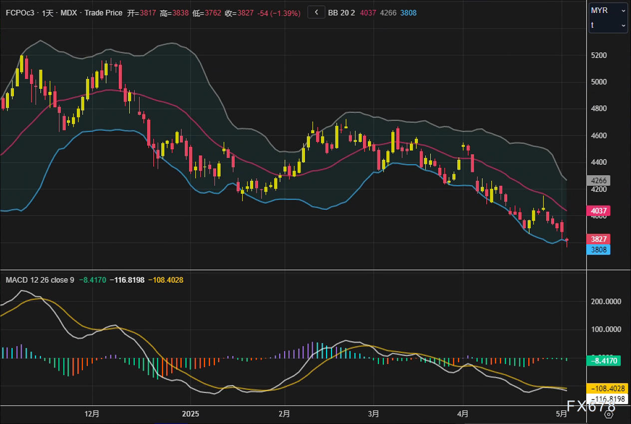 周一(5月5日)马来西亚棕榈油期货市场延续跌势,基准7月交割合约(FCPOc3)在马来西亚衍生品交易所收盘报3827林吉特/吨,较前一交易日下跌54林吉特,跌幅1.39%。这是棕榈油连续第五个交易日走低,市场承压于马来西亚林吉特(马币)的持续升值、芝加哥豆油价格的疲软以及原油价格的进一步下挫。交易者情绪谨慎,季节性供应增加预期与生物柴油需求减弱叠加,令市场短期内难觅支撑。本文将结合最新行情,从基本面和技术面剖析棕榈油价格走势,并展望未来盘面动向。 ![]() 棕榈油价格的持续回落反映了基本面多重利空因素的共振。首先,马币的强势表现成为价格下行的直接推手。5月5日,马币兑美元升值1.48%,使得以马币计价的棕榈油对海外买家变得更加昂贵。来自新加坡的商品策略师Darren Lim指出:“马币升值正在侵蚀马来西亚棕榈油的出口竞争力,对价格形成直接压力。”在全球植物油市场竞争激烈的背景下,价格敏感的买家可能转向更具成本优势的替代品,如印尼棕榈油或南美豆油。 其次,原油价格的疲软进一步削弱了棕榈油作为生物柴油原料的吸引力。5月5日,国际油价下跌超2%,主要受OPEC+周末决定加速增产的影响,市场对供应过剩的担忧加剧。Darren Lim进一步分析称:“原油期货的持续走弱使得棕榈油等植物油在生物柴油领域的需求前景黯淡,市场整体看跌情绪加重。”在能源价格低迷的背景下,棕榈油的工业需求受到抑制,价格承压在所难免。 此外,季节性供应压力的预期也在拖累市场情绪。知名机构调研显示,马来西亚4月棕榈油库存预计连续第二个月上升,随着行业步入产量高峰期,下半年供应增长将更加显著。交易员普遍预期,5月至9月的生产旺季将进一步推高库存水平,短期内难以出现供需紧平衡的局面。这种供过于求的预期直接削弱了买盘信心,促使价格进一步下探。 与此同时,全球植物油市场的联动效应也不容忽视。芝加哥交易所的豆油期货(BOcv1)5月5日下跌1.15%,反映出全球食用油价格的整体疲软。作为全球植物油市场的重要组成部分,棕榈油价格与豆油、葵花油等竞争对手的走势密切相关。当前,豆油价格的走弱为棕榈油价格设定了下行参照,进一步限制了其反弹空间。值得注意的是,中国大连商品交易所因劳动节假期于5月1日至5月5日休市,短期内亚洲市场的交易活跃度有所下降,可能加剧价格波动的单边性。 技术面:空头动能占优,关键支撑待考验 从技术面看,棕榈油日线图显示空头动能依然占据主导。当前价格3827林吉特/吨,位于布林带下轨3808与中轨4037之间,逼近下轨支撑。布林带整体呈收敛形态,表明市场波动性正在减弱,但价格在中轨下方运行,显示空头仍占据上风。MACD指标方面,快线为-8.4170,慢线为-116.8198,MACD值为-108.4028,快慢线处于零轴下方且缺口扩大,表明看跌动能仍在累积,短期内难现反转信号。 价格自4月中旬以来持续下行,未能有效站上4037的中轨阻力,显示多头力量薄弱。X平台上部分交易员指出,3808的下轨支撑将是短期内的关键水平。若价格跌破该点,可能进一步下探至3750-3780区间,接近去年12月的低点区域。反之,若价格能在3808附近企稳,并突破3900关口,则可能引发短线反弹,目标指向中轨4037。然而,当前技术指标尚未显示明显的止跌信号,空头趋势可能延续。 ![]() 未来趋势展望 展望未来,棕榈油市场短期内仍将面临下行压力。基本面上,马币的强势、原油价格的低迷以及季节性供应增加的预期将继续主导价格走势。OPEC+增产计划的推进可能进一步压制原油价格,从而削弱棕榈油的生物柴油需求。与此同时,全球植物油市场的竞争格局也将限制棕榈油的反弹空间。交易员需关注芝加哥豆油期货的后续走势,以及大连商品交易所复市后的市场反应。 技术面上,3808的下轨支撑将是短期内的重要观察点。若价格跌破该水平,空头可能加速下探3750;若能守住支撑并突破3900,则可能迎来短暂喘息。考虑到当前市场情绪偏谨慎,价格在3800-3900区间震荡的可能性较高,但整体趋势仍偏空。 ![]() |