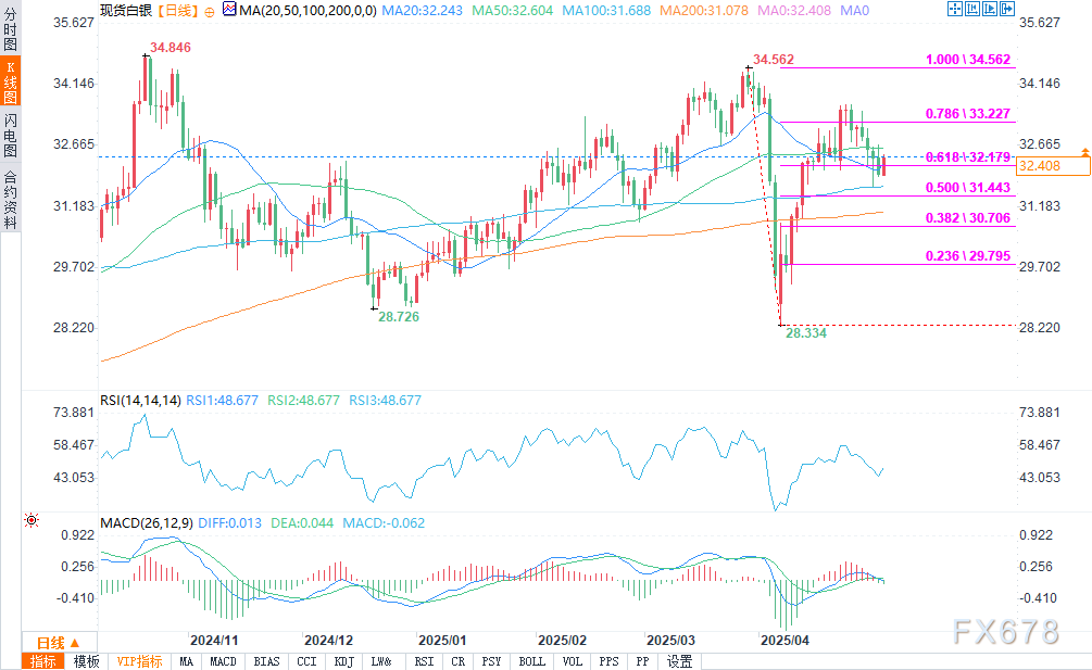 周一 5月5日 欧盘时段 在黄金大幅上涨以及美元走弱的推动下 白银价格上涨超过1 此前 白银成功测试了32 19美元至31 45美元之间的关键支撑位 这激发了逢低买入的兴趣 然而 交易员仍持谨慎态度 因为白银的表现依然逊于 ...