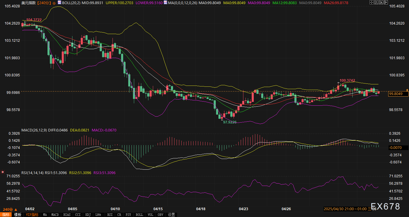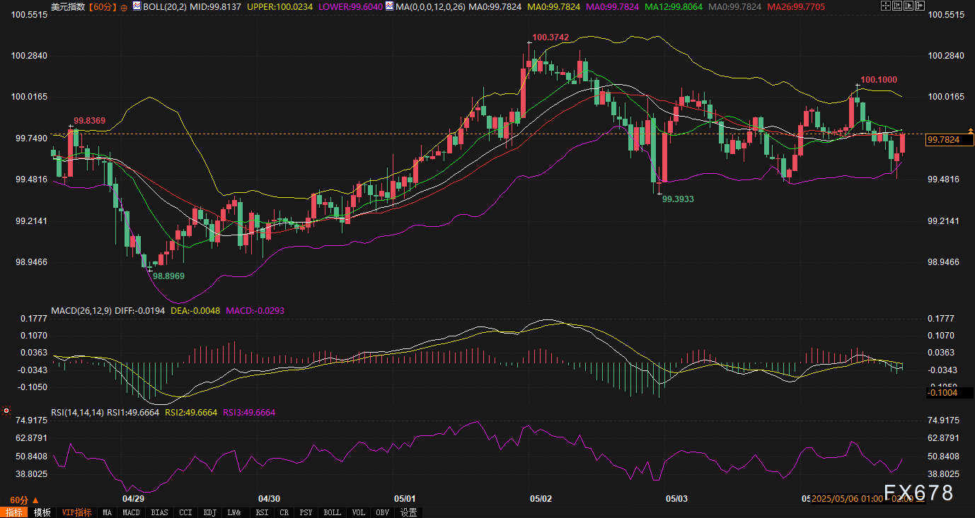周二(5月6日),美元指数延续疲软态势。市场对贸易协议的乐观情绪消退,叠加新兴亚洲货币波动加剧,美元短期承压明显。美联储及英国央行政策会议临近,投资者交投趋于谨慎,技术面多空力量陷入僵持,盘面进入震荡整理阶段。以下结合60分钟与240分钟图技术指标及基本面动态,解析当前市场逻辑。 ![]() 从60分钟图技术指标来看,布林带上轨100.0233、中轨99.8137、下轨99.6042,报价99.7804贴近中轨下方,显示短期平衡中偏弱。均线系统方面,12周期均线(99.8067)略高于26周期均线(99.7710),但两者间距仅0.0357点,表明多空力量接近均衡。结合RSI 14数值49.9468处于中性区间,短期缺乏明确方向指引。 关键推演:下行风险:若价格跌破布林带下轨99.6042,可能触发技术性卖盘,短期目标指向99.50心理关口。反弹机会:若价格站稳中轨99.8137并上探上轨100.0233,需警惕假突破风险,因布林带收口暗示波动收敛,上行需基本面配合。 当前技术面显示空头略占优势,但未形成趋势性信号,日内或维持99.60-100.02区间震荡。 ![]() 240分钟图布林带开口较宽(上轨100.2704、中轨98.8925、下轨99.5150),报价99.7804位于中轨上方,但日内下跌0.02点显示中期动能不足。均线系统中,12周期均线(99.8077)与26周期均线(99.8170)近乎重叠,RSI 14数值51.1394略高于中性线,暗示中期存在微弱看涨倾向,但缺乏持续动能。 关键推演:震荡延续:若价格持续徘徊于中轨附近,中期可能维持99.51-100.27宽幅震荡,等待外部事件驱动。破位风险:若有效突破上轨100.27,需关注前期高点阻力;若失守下轨99.51,中期趋势或转向下行,目标指向99.00支撑区域。 当前技术面显示中期趋势未明,需警惕政策会议或贸易消息引发破位波动。 ![]() 贸易协议预期降温:市场对短期内达成削减关税的协议愈发悲观。某知名机构外汇策略主管指出,“此前贸易协议的乐观情绪已消退,投资者开始关注关税对全球经济的潜在冲击”。这一情绪转变直接压制美元需求,促使资金流向避险资产及新兴市场。 央行政策博弈:美联储周三料维持利率不变,但市场关注其对经济前景的措辞;英国央行周四或降息25基点以对冲“关税言论”对增长的冲击。瑞士央行表态可能干预汇市,加剧全球流动性再平衡压力。 未来趋势展望 短期(1-3日):美元指数大概率维持技术性震荡。60分钟图窄幅区间与240分钟图宽幅震荡并存,显示市场等待政策会议及贸易动向指引。若美联储释放鹰派信号或贸易协议出现转机,美元或短暂反弹;反之,避险情绪升温可能推动资金进一步撤离美元。 中期(1-2周):技术面与基本面均未提供明确方向,但下行风险逐步累积。若新兴市场资金流入趋势延续,叠加主要央行宽松政策落地,美元指数或测试99.00支撑。投资者需紧盯政策声明中的前瞻指引及亚洲货币市场动态,警惕突发消息引发趋势逆转。 当前美元指数处于多空拉锯的关键窗口,技术面震荡格局与基本面不确定性形成共振。交易者需以风控为先,等待技术破位或政策信号明确后再做布局。市场波动率或随事件临近上升,建议轻仓应对,灵活调整策略。 ![]() |
