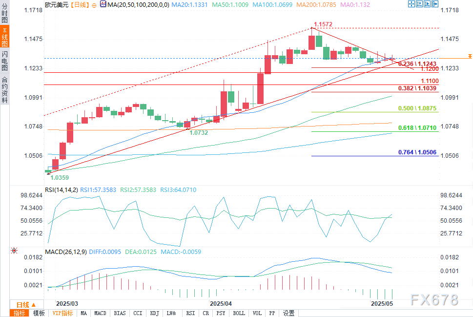 周二(5月6日)欧盘时段,欧元兑美元价格波动频繁,价格围绕均价线(1.1314 )上下波动 ,多空双方存在一定博弈。 欧元兑美元目前处于4月高点以来的下降趋势阻力线与2月底确立的主要上升趋势支撑线的交汇处。 ...