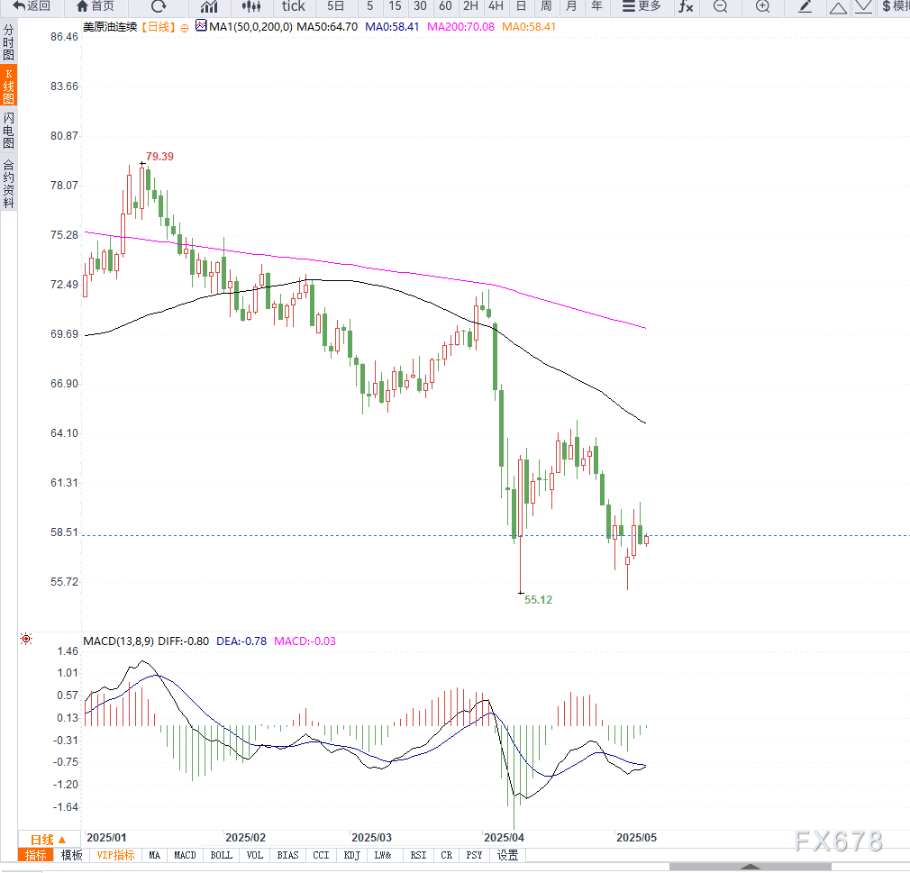 隔夜布伦特和WTI原油分别下跌1.66%和1.73%,主要原因在于市场对贸易会谈结果缺乏信心,同时伊朗核协议谈判释放出的积极信号减轻了供应短缺的担忧。 ![]() 美国财长贝森特表示,此次会谈仍处于非常初级的阶段,与此同时,美国与伊朗之间的对话进展也成为市场关注的焦点。 美国副总统万斯表示,美伊会谈“到目前为止,进展顺利”,未来可能达成协议,使伊朗重新融入国际经济体系,并防止其发展核武器。这种潜在的协议将可能释放更多伊朗石油供应,缓解市场对原油短缺的担忧。 “这为油市增加了一定程度的供应缓冲空间,”市场分析师指出。供应方面,美国能源信息署(EIA)数据显示,尽管原油库存减少200万桶,降至4.384亿桶,但汽油库存意外增加,抑制了油价上涨势头。 分析师原预期原油库存减少仅为83.3万桶,而汽油库存的意外增长引发市场对夏季出行需求疲软的忧虑。 此外,美联储维持利率不变,但警告通胀和失业风险正在上升,这一表态令投资者进一步担心美国经济前景。 “当前政策的不确定性,尤其是对贸易政策的反应,将对未来几个月的能源需求形成重大变量,”能源咨询机构表示。 从技术面来看,美国WTI原油日线图显示,油价已连续三个交易日回落,目前跌破60日均线支撑,短期技术形态偏弱。当前价格接近布林带下轨,若未能在58美元上方企稳,可能进一步下探至56.80美元附近的前期低点支撑。 相对强弱指数(RSI)已跌至中性偏弱区域,MACD指标亦显示下行动能增强。整体来看,除非基本面出现明显利好,否则油价短期或将维持震荡下行格局。 ![]() 当前国际原油价格的走势正在进入一个多重因素博弈的敏感期。贸易谈判的不确定性与伊朗供应潜力构成双重压力,短期油价波动将更多受地缘政治与库存动态主导。在美联储政策保持观望的背景下,需求端的疲弱信号也可能令原油市场持续承压。 ![]() |