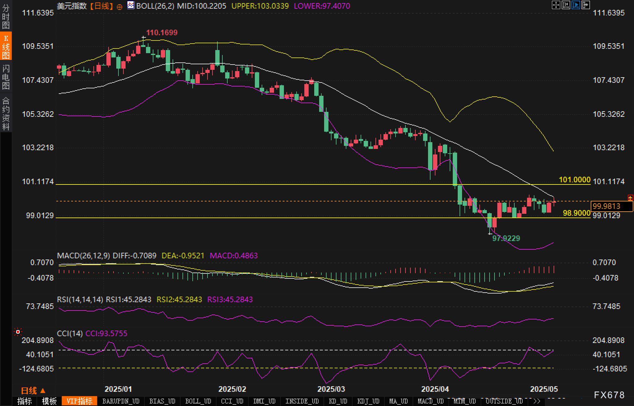 周四(5月8日),美元指数(DXY)在连续反弹后于北美时段再次跌破100.00整数关口,尽管美联储维持利率不变、美国总统特朗普即将宣布与英国的“重大贸易协议”,但市场显然开始对协议的实质性内容表示质疑。截至当前,美元指数徘徊在99.98附近,反映出多空交锋加剧,市场进入高度观望状态。 ![]() 近期美元走强可归因于两大催化剂:首先,美联储如期维持政策利率在4.25%-4.50%区间不变,鲍威尔在新闻发布会上重申“观望态度”,暗示短期内不太可能降息。考虑到美债收益率维持高位,美元仍具有利差优势,吸引避险和套利资金回流。 其次,市场对特朗普即将宣布的“美英重大贸易协议”预期升温,进一步推升美元情绪。然而,随着市场逐步消化利好,诸多分析人士指出该协议或仅限于部分领域的象征性成果,缺乏实质落地内容。例如食品加工标准分歧等基础问题尚未弥合,使协议更多被市场解读为政治表态而非经济突破。 技术面分析师解读: 从美元指数日线图观察,当前价格运行于布林带中下轨之间,布林带整体开口,反映出波动率有所扩大。指数自高点110.1699持续下行,阶段低点出现在97.9229,随后展开震荡反弹。短期内,99.00附近构成关键支撑位,而101.00成为当前最直接的上方阻力区。 ![]() MACD指标方面,DIFF线与DEA线仍处于0轴下方,空头趋势尚未逆转;而RSI(14)位于45.28,表明当前未进入超买或超卖区间,仍具震荡空间。CCI指标快速反弹至93.57,预示短期或存一定反弹动能,但方向确认仍需突破配合。 市场情绪观察 当前市场情绪呈现高度分化。一方面,权益市场受“贸易协议”消息提振普遍上行,反映出风险偏好回升;另一方面,外汇市场对于“重大协议”所带来的经济影响持保留态度,美元反弹受阻、未能突破101.00阻力,凸显市场共识尚未建立。 此外,特朗普对美联储的再度批评加剧了政策预期的不确定性,尤其是其对利率政策与通胀走势的公开质疑,可能使部分交易员重新评估美联储的独立性与政策可信度,从而影响美元中期表现。 后市展望 短期展望:若特朗普公布的“美英协议”缺乏具体条款支持,美元或再次测试99.00支撑区间,进一步下探至97.90并非不可预期。而若协议内容超预期、伴随美国经济数据改善,美元有望重新测试101.00甚至102.00区域。 中长期展望:当前美元走势核心仍取决于利率预期变化与经济基本面表现。若美联储持续按兵不动,同时美国就业、通胀双向疲软,则美元指数可能陷入更长时间的横盘或温和回撤。反之,若美国通胀再起、市场重新计价加息概率,则美元或进入新一轮多头行情。 注:本文基本面内容据路孚特报道展开。 ![]() |