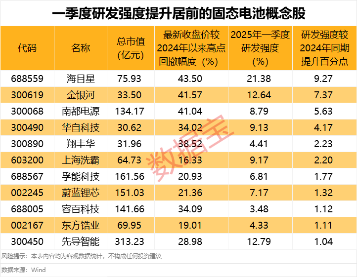 固态电池多重利好来袭。 早盘市场高开后震荡,创业板指盘中涨超2%,军工、机器人、高铁轨交、消费电子等板块涨幅居前;黄金、创新药、农业、电力等板块跌幅居前。 军工板块今日持续走强,昆船智能等超20股封涨停板,军工、高端装备等ETF涨超5%。 中邮证券表示,展望2025年,军工行业订单有望迎来拐点,服务于提升装备性能或降低装备成本的新技术,以新域新质作战力量为代表的新产品,军贸和军用技术转化带来的新市场等方向或蕴含更大弹性。 固态电池迎多重利好 固态电池概念股早盘持续活跃,龙蟠科技等个股涨停,贝特瑞、国轩高科等股跟涨。消息面上,5月13日,贝特瑞新品发布会将有固态电池新品;5月16—17日,国轩高科将发布高安全固态电池新品,能量密度为300Wh/kg。 此外,第十七届深圳国际电池技术交流会/展览会(CIBF2025)将于5月15日至17日在深圳举办。本次展览面积约28万平方米,预计参展展商超3000家。参展展商名单中,出现了宁德时代、比亚迪、3M中国等多家知名公司。 CIBF2025同期还将举办CIBF2025先进电池前沿技术研讨会,主题为“绿色能源驱动未来”,会议内容涉及先进锂离子动力电池技术、电池安全与测评、固态及新体系电池、大功率快充技术、钠离子电池、关键材料技术、智能装备与制造数字孪生。在展会官方公布的主会场议程中,多个演讲都与固态电池有关。 ![]() 多只概念股研发强度显著提升 中信证券表示,政策支持信号进一步强化,2025年人形机器人、eVTOL、消费电子等固态电池高端应用有望进一步放量,推动固态电池材料行业步入高速发展期。 据证券时报·数据宝统计,A股中固态电池概念股约有50只,年内股价平均上涨5.23%,三祥新材、上海洗霸、冠盛股份股价涨幅居前,年内均上涨超50%。 从估值来看,目前固态电池概念股中有12只个股的最新市盈率不足30倍;其中,新宙邦、长城汽车、亿纬锂能、璞泰来等股最新股价较2024年以来高点已回调超20%。 容百科技5月以来获得106家机构调研,公司表示,在全固态电池方面,公司紧密围绕国家战略以及行业顶尖客户的需求,针对硫化物电解质及配套的正极材料开展了持续深入的研究。目前,已完成了电解质连续式生产的产线设计,部分量产设备也已完成带料验证,预计将于今年四季度完成中试线的建设工作。 格林美在近期的调研活动中表示,固态电池行业预计2027年前后启动全固态电池批量示范装车应用及小规模量产,2030年前后实现全固态电池大规模量产;公司在适配固态电池富锂锰基正极及前驱体、9系超高镍正极及前驱体等技术路线均有技术布局并取得突破性进展,且均有吨级以上产品出货。 不少概念股今年一季度研发强度(研发费用占营收比例)呈现显著提升,海目星、金银河、南都电源、华自科技的研发强度较2024年同期均提升超4个百分点。 海目星今年一季度研发强度为21.38%,较2024年一季度提升9.27个百分点,公司2024年深度参与新一代锂电池技术固态电池设备的开发,与某固态电池的技术领军企业达成5年期战略合作协议,并签订了价值4亿元的 2GWh固态电池设备量产订单,成为了行业首家商业化锂金属高能量密度固态电池整线设备供应商。 ![]() (文章来源:证券时报网) |