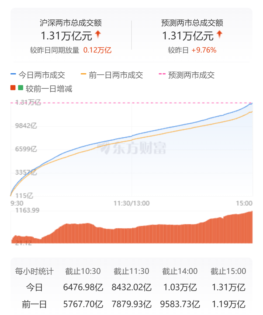 A股三大指数今日集体走强,截止收盘,沪指涨0.82%,收报3369.24点;深证成指涨1.72%,收报10301.16点;创业板指涨2.63%,收报2064.71点。沪深两市成交额达到13084亿,较上个交易日放量1164亿。 行业板块多数 ...