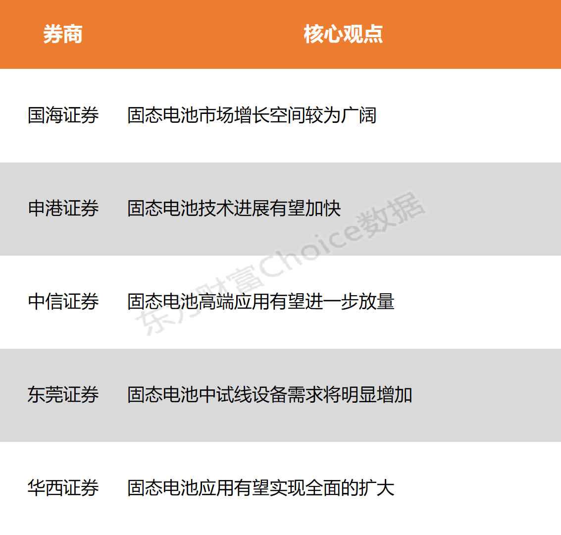 5月12日,两市股指全线走高,沪指涨近1%,创业板指涨近3%,场内超4100股飘红。 行业板块多数收涨,两大军工板块航天航空与船舶制造大涨,电机、通信设备、消费电子、交运设备、电池、通信设备、电子元件板块涨幅居前,贵金属板块跌幅居前。 第十七届深圳国际电池技术交流会/展览会(CIBF2025)将于5月15日至17日在深圳举办。本次展览面积约28万平方米,预计参展展商超3000家。参展展商名单中,出现了宁德时代、比亚迪、3M中国等多家知名公司。国海证券表示,随着固态电池未来几年量产节点的到来,其市场增长空间较为广阔;申港证券指出,全新电动场景将有力刺激固态电池加速发展,固态电池技术进展有望加快;中信证券认为,固态电池高端应用有望进一步放量,推动固态电池材料行业步入高速发展期。 ![]() 国海证券:固态电池市场增长空间较为广阔 固态电池满足下游领域对电池性能不断提升的需求,其在多个新兴产业领域具备应用拓展空间。随着未来几年量产节点的到来,其市场增长空间较为广阔,有望重塑锂电池关键材料体系,在关键材料有布局或与具备核心技术优势、率先占据产业化优势企业有战略合作的相关公司有望受益。 申港证券:固态电池技术进展有望加快 低空飞行器、人形机器人等领域的快速发展,高安全和高能量密度(轻量化)为主要诉求的全新电动场景将有力刺激固态电池加速发展,固态电池技术进展有望加快。 中信证券:固态电池高端应用有望进一步放量 行业进展不断提速,政策支持信号也将进一步强化。2025年人形机器人、eVTOL、消费电子等固态电池高端应用有望进一步放量,推动固态电池材料行业步入高速发展期。固态电解质为核心增量,建议关注材料端进展领先,与产业界联动紧密的低位个股。 东莞证券:固态电池中试线设备需求将明显增加 固态电池设备是支撑固态电池产业发展的基础和关键环节。半固态电池自2024年开始已逐步进入量产阶段,全固态电池将于2027年开始小批量生产。预计2025年至2026年固态电池中试线设备需求将明显增加。 华西证券:固态电池应用有望实现全面的扩大 固态电池的发展是基于对于电池性能和安全性等要求的提高,随着技术的持续优化、规模的扩大带来成本的下降,固态电池应用有望实现全面的扩大。从半固态入手,逐步实现全固态应用;技术路线从氧化物/聚合物/复合态,逐步向硫化物发展;能量密度、循环性能、倍率性能等性能持续提升。从高端乘用车和eVTOL等成本相对不敏感领域需求为锚,规模放大后渗透至动力、储能、消费多领域应用。根据各家车企和电池厂的进度以及目标,预计产业化落地时点集中在2027—2030年。看好固态电池发展带来的包括电解质、导电剂、设备等多环节产业化机遇。 (本文不构成任何投资建议,投资者据此操作,一切后果自负。市场有风险,投资需谨慎。) (文章来源:东方财富研究中心) |