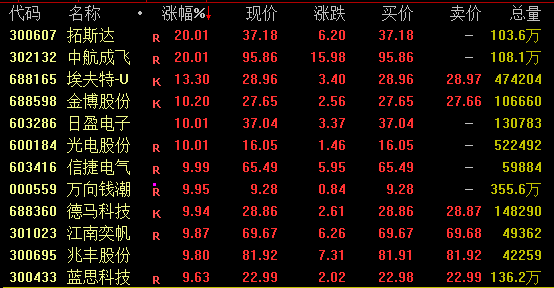 A股今日全线走高,沪指涨近1%,创业板指涨近3%;港股尾盘飙升,恒生指数目前涨超3%,恒生科技指数暴涨约6%。富时中国A50指数期货直线拉升一度涨超2%。 具体来看,两市主要股指盘中单边上行,深证成指、创业板指尤为强势。截至收盘,沪指涨0.82%报3369.24点,深证成指涨1.72%报10301.16点,创业板指涨2.63%报2064.71点,北证50指数涨2.89%,沪深北三市合计成交13410亿元,较此前一日增加近1200亿元。 场内超4100股飘红,券商板块拉升,锦龙股份盘中一度涨停,东方财富、中国银河等涨超4%;军贸概念再度爆发,中航成飞、航天南湖、华如科技等20%涨停;人形机器人概念活跃,拓斯达20%涨停,埃夫特涨超13%;苹果概念崛起,东尼电子、朝阳科技等涨停。 港股方面,截至发稿,舜宇光学科技、比亚迪电子涨超15%,联想集团涨超10%,京东集团、快手、阿里巴巴、招商银行、中国人寿等涨超5%。 消息面上,今日午后,中美日内瓦经贸会谈联合声明发布,双方承诺将于2025年5月14日前采取修改加征的从价关税等系列举措。 券商板块拉升 券商板块盘中强势拉升,截至收盘,锦龙股份涨8.5%,盘中一度涨停;华鑫股份、东方财富、中国银河等涨超4%,中信证券涨近3%。 ![]() 政策层面,上周,国新办发布会介绍了“一揽子金融政策支持稳市场稳预期”有关情况;同时,证监会发布《推动公募基金高质量发展行动方案》,有望影响机构投资行为,引导长期投资、鼓励权益基金发展,长期有助于资本市场健康发展。 国金证券指出,政策加码+市场活跃度较高,券商业绩有望延续双位数增长。此外,行业并购主题持续、当前估值与业绩错配程度较大,继续关注券商板块机会。民生证券表示,4月中央政治局会议定调积极,国新办发布会一揽子金融支持政策逐步落地显效,增量政策有望提振市场情绪,推动估值持续修复。交投活跃度提升,叠加资本市场平稳运行,券商业绩修复趋势有望延续。 军贸概念爆发 军贸概念盘中大幅拉升,截至收盘,中航成飞、航天南湖、华如科技20%涨停,中无人机涨超11%,国睿科技亦涨停。值得注意的是,航天南湖近4个交易日已累计大涨近75%。 ![]() 据央视新闻报道,当地时间10日,巴基斯坦和印度宣布达成停火协议。然而,双方宣布停火后不久,印控克什米尔地区再次传出爆炸声。消息称,巴基斯坦防空系统在白沙瓦机场附近击落一架印度无人机,印度防空部队也对巴基斯坦无人机进行了拦截。印度指巴基斯坦违反停火协议,巴方否认。 中航证券指出,本次印巴政治冲突,对于军工行业的直接影响集中在军贸领域,在中长期维度上,将进一步加强全球军贸逻辑,带来国防军工市场上限突破。对于我国而言,随着我国自身产品竞争优势与生产能力的不断提升,之前国内产能倾向于解决内需的情况有望逐步改变,叠加部分国家的军贸出口萎缩导致其下游客户需求存在缺口、全球战争形态的演变、我国政策出台引导军贸出口合规发展等因素,我国军贸短期内有望持续增长,并在“十四五”末期由恢复式增长向供需共振驱动增长转变。 人形机器人概念活跃 人形机器人概念盘中再度活跃,截至收盘,拓斯达20%涨停,埃夫特涨超13%,金博股份涨超10%,日盈电子、信捷电气等均涨停。消息面上,5月10日,第六届上海创新创业青年50人论坛举行,杭州宇树科技有限公司首席执行官王兴兴在演讲中透露,受益于人形机器人市场热度和国家政策关注,目前包括宇树在内的人形机器人企业的发展都处于良好状态,很多企业订单都爆了。 ![]() 中信证券认为,2025年将成为具身智能机器人产业的量产元年,具身智能机器人是AI与物理世界的重要结合,其量产及场景的开拓试验性应用宣告了人工智能AGI和机器人产业的深度融合,推动新一轮的产业革命。全球政府、科技制造巨头、产业链企业、科研机构及资本均已聚焦和躬身入局,呈现出百舸争流的竞赛之势。不同时代与技术背景的机器人整机公司、具身模型软件方、总成、核心零部件及下游场景企业,共铸产业生态多元化,中国企业在产业链各环节均有布局,中国制造是全球机器人硬件降本的重要支撑,具备比较优势。庞大且复杂的场景落地是具身智能机器人发展的有效试验场,当具身智能的“DeepSeek时刻”出现,具身智能机器人的爆发将成就下一阶段的科技产业浪潮。坚定看好具身智能机器人未来十年以上的产业发展机遇。 (文章来源:证券时报) |