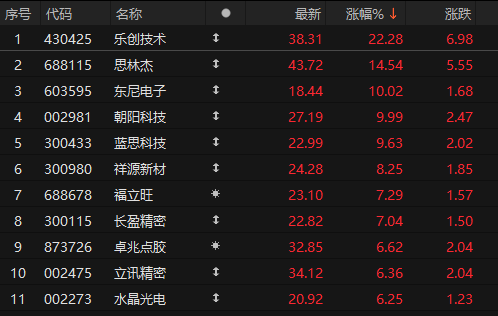 5月12日午后,富时中国A50指数期货直线拉升涨超1.8%。港股也同步拉升,恒生指数直线拉升涨超3%,恒生科技指数涨幅扩大至6%。科技股巨头午后涨幅扩大同时成交放大,阿里巴巴-W涨5%,腾讯控股涨4%。 同时,美股指数期货也直线走高,纳斯达克100指数期货涨超3%,道指期货涨超2%,标普500指数期货涨近3%。美国10年期国债收益率攀升至一个月高点。美元兑日元升至4月10日以来最高水平。 A股三大指数今日集体上涨,截至收盘,沪指涨0.82%,深成指涨1.72%,创业板指涨2.63%,北证50指数涨2.89%。全市场成交额13409亿元,较上日放量1185亿元。全市场超4100只个股上涨。 盘面上,军工板块持续走强掀涨停潮,七丰精工“30cm”涨停创新高。苹果产业链个股今日集体反弹,蓝思科技、立讯精密、歌尔股份涨幅居前。机器人表现同样活跃,拓斯达“20cm”涨停,埃夫特涨超10%,三丰智能、亿嘉和、埃斯顿跟涨。 军工板块超20股涨停 周一上午,军工股再度飙升。截至收盘,国防军工指数涨逾5.4%,昆船智能、航天南湖、华如科技等超20股涨停。航天南湖近4个交易日已累计大涨近75%。 ![]() 华福证券表示,估值层面,截至5月9日,申万军工指数五年维度看,当前市盈率TTM为65.06倍,分位数为88.63%,叠加2025年行业基本面强恢复预期,当下时点军工板块具备较高配置价值。 中航证券认为,商业航天、军贸为代表的“大军工”将持续对军工行业的市场空间和天花板进行数量级的抬升。特别是从近期行情来看,伴随着军工基本面有望迎来持续回暖,“主题活跃+业绩提振”将构成未来较长一段时间的二重奏,共同推动军工整体行情的再次到来。 苹果概念股持续走高 蓝思科技涨近10% 今日午后,苹果概念股持续走高,蓝思科技涨近10%,东尼电子、朝阳科技涨停,立讯精密、长盈精密、水晶光电、东山精密、歌尔股份等多股活跃。 ![]() 港股苹果概念股也大幅拉升,截至发稿,高伟电子涨超18%,舜宇光学科技涨超16%,瑞声科技涨超15%,丘钛科技涨超14%。 研究机构Techinsights的最新数据显示,2025年第一季度,中国智能手机市场出货量同比增长9%,达6870万部,已连续五个季度保持增长。Counterpoint Research称,预计2026年AR显示器出货量将增长38%。端侧AI潜力巨大,耳机和眼镜有望成为端侧AI Agent的重要载体。 信达证券表示,目前中国的消费电子企业在全球的供应链中占据了举足轻重的位置。首先,在多年的发展中逐步优化自身的技术底蕴,在不断创新的过程中树立了较强的壁垒。其次,中国消费电子行业已经形成了良性的产业群,企业间的良性互动拉动了产业链整体发展,中短期内难以在全球的其他国家找到替代品。第三,中国的消费电子企业在近年来也不断深化全球布局。 (文章来源:上海证券报) |