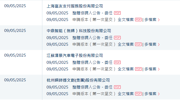 赴港上市的公司越来越多,仅在5月9日,就有4家公司递表。 港交所官网显示,截至4月30日,仍有130家公司的上市申请在处理中,已上市19家,待上市的公司18家。 ![]() 申请赴港上市的公司数量仍在不断增加,港交所在4月受理的上市申请包括32家主板、3家GEM和7家根据《主板上市规则》第二十章递交的上市申请。 而据证券时报记者统计,5月以来,有8家公司递表港交所,仅在5月9日这一天就有4家公司扎堆递表。 ![]() 拟上市公司各有特色 据了解,目前赴港上市的公司主要以“硬科技+新消费”为主。以在5月9日同时递表的4家公司而言,同样是各有特色。 第一家公司铜师傅是一家典型的新消费公司。根据弗若斯特沙利文报告,该公司2024年在中国铜质文创工艺产品市场按总收入计位列第一,市场份额达35.0%。铜师傅品牌发轫于承袭中国传统工艺的铜器工坊,历经十年演进,通过深度设计重构传统文化表达,成为引起广泛消费者共鸣的全国领军文创品牌。 ![]() 铜师傅的价格并不低。铜师傅的定价策略根植于质价比原则,强调每件产品的艺术、文化和物质价值,同时确保广泛的消费者可及性。铜师傅的目标是提供博物馆级的工艺和具有收藏价值的艺术品,其价格范围既能体现审美成熟度,又能体现生产卓越性。于往绩记录期,铜师傅的在线客单价均高于人民币750元。 第二家公司泽景电子则是一家典型的硬科技公司。泽景电子是中国创新智能座舱视觉、交互解决方案的先行者和领军者,提供以挡风玻璃HUD解决方案CyberLens及增强现实HUD(简称AR-HUD)解决方案CyberVision为主,以测试解决方案和其他创新视觉技术解决方案为辅的综合解决方案。 泽景电子率先在中国市场推出自研HUD解决方案,并在中国率先推出了基于数字光处理(DLP)技术的量产AR-HUD,其可通过抵抗环境干扰保障更稳定可靠的性能。通过创新解决方案,泽景电子积极推动智能座舱视觉、人车交互系统由2D至3D、AR变革及市场渗透。 同时,泽景电子在各项数据方面的增长都极为明显。其目前覆盖的主机厂客户达到20家以上,2022财年至2024财年解决方案交付量增至3倍,2022财年至2024财年收入复合增长率达到64.3%。 ![]() 第三家公司中鼎智能是中国领先的智能场内物流和仓储自动化解决方案提供商。中鼎智能的核心产品为智能场内物流解决方案,通过集成智能场内物流管理软件与堆垛机、穿梭车、输送线、分拣机及机器人等场内物流设备,在广大行业垂直领域的仓库、工厂及生产线内协调货品的搬运和存放。 根据灼识咨询的资料,就2024年的收入而言,中鼎智能在中国智能场内物流解决方案行业中,排名第四;在中国工业领域智能场内物流解决方案中,排名第二;在中国新能源锂离子电池领域智能场内物流解决方案中,排名第一。 相比起前面3家公司,第四家公司富友支付的市场排名则没有那么靠前,且富友支付此前在2024年就曾递表港交所,本次是再度递表。 富友支付是中国多领域的全能型数字化支付科技平台,在多元化商业场景下为不同规模及不同行业的客户赋能,提供多渠道支付服务以及科技、管理和其他增值服务。 根据弗若斯特沙利文报告,富友支付是中国率先提供多渠道数字支付及数字化商业解决方案的科技平台之一,亦是首批获得开展跨境外汇支付服务许可的公司之一。富友支付帮助商户客户向终端客户收款的收单服务、跨境数字支付及账户运营服务等众多产品均为行业首创。2024年中国综合数字支付服务市场的TPV为人民币268.6万亿元,由三大非独立综合数字支付服务提供商主导,三者合共占据75.6%的市场份额。按2024年的TPV计,富友支付在中国综合数字支付服务提供商中排名第八位,市场份额为0.8%。 港股IPO持续火爆 大量拟上市公司递表港交所,表明港股IPO市场的火爆仍在继续。 在今年一季度,港交所上市活动和集资额延续2024年下半年的强劲势头。香港位居全球五大新股市场之一,一季度共有17家公司上市,总集资额达187亿港元,是2024年第一季的近四倍。 而在5月20日,港股市场还将迎来一个“大块头”——宁德时代,该公司目前正处于招股期。 宁德时代此次港股上市将发行1.18亿股股份,募集资金净额约307亿港元。如果考虑到发售量调整及超额配股,宁德时代的募资金额有望提升至约406亿港元。 宁德时代有望超越美的集团去年9月在港上市时的募资规模。美的集团当时在港交所二次上市,募集资金净额306.68亿港元,创下港股市场三年来的IPO募资新高。宁德时代此次的募资规模,也接近快手2021年IPO时募资412.76亿港元的体量。 对于港股IPO市场迅速复苏的原因,浦银国际首席策略分析师赖烨烨认为主要由三大核心因素驱动:一是中国AI技术突破使得港股市场情绪和信心得到修复。当市场情绪乐观时,IPO市场通常较活跃,投资者参与积极性较高。二是随着美联储开启降息周期,南向资金与外资的共同净流入,港股的流动性显著改善,有助于活跃港股IPO市场。三是打新赚钱效应更明显,机构参与积极度提升,也吸引了较多个人投资者参与。2025年新股首日破发率仅为28%,远低于去年同期的50%。 对于2025年的港股IPO市场,赖烨烨认为,目前,有近140个公司的递表状态为“处理中”,当中不乏超大型A股上市公司。预计这些公司将支持今年港股上市公司数量和融资规模同比进一步提升。在多个大型IPO上市、美联储持续降息以及海外资金加大对港