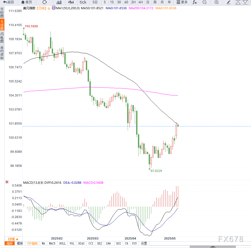 美元维持强劲涨势,因美国与亚洲大国达成的90天关税削减协议缓解了市场对全球经济放缓的担忧,提振风险情绪,也带动市场重新评估美联储的政策路径。 ![]() 欧元兑美元微升0.1%至1.1095,前一交易日跌幅达1.4%。英镑基本持稳于1.3178,澳元小幅反弹至0.6374,新西兰元回升至0.5862,但两者均仍接近短期低点。 美元走强的另一个推手是市场对美联储降息预期的修正。随着贸易担忧情绪缓解,市场认为美联储降息以刺激经济的必要性有所下降。联邦基金利率期货数据显示,截至12月,市场仅定价约56个基点的降息空间。 “这一协议减少了此前因高关税所导致的下行风险,美联储短期内的政策路径或将更为克制,”麦格理经济研究主管David Doyle表示。 与此同时,美国国债收益率同步上涨:两年期收益率稳定于3.9977%,十年期收益率报4.4551%,均为一个月高位附近。 技术层面来看,美元指数日线图显示,当前价格持续上行,并成功突破前期震荡区间上沿100.80-101.20的压力位,显示多头动能逐步增强。 当前指数稳固站上20日与50日均线,均线呈现多头排列,表明中期趋势向好。MACD指标也出现金叉,红柱持续扩大,技术面支持继续上行。 若后市守稳101关口,下一目标将指向102.50一线;若回落跌破100.80,则需警惕上涨动能衰竭引发的技术性调整。 ![]() 当前美元的强劲表现源自于避险情绪缓和与货币政策预期的同步调整,短期内或仍有上涨空间。但中长期走势仍需观察贸易协议后续落实情况及美联储在通胀与增长之间的政策平衡。 市场情绪虽改善,但对经济软着陆与地缘风险的担忧并未完全解除,谨防美元再次回落。 ![]() |
