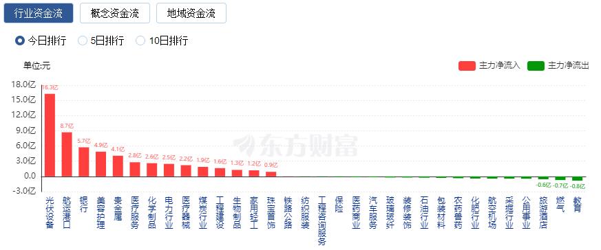 A股三大指数今日震荡整理,截至收盘,沪指涨0.17%,收报3374.87点;深证成指跌0.13%,收报10288.08点;创业板指跌0.12%,收报2062.26点。沪深两市成交额达到12916亿,较昨日小幅缩量169亿。 ![]() 行业板块涨少跌多,航运港口、光伏设备、银行、美容护理板块涨幅居前,航天航空、船舶制造、小金属、计算机设备、交运设备、通信设备板块跌幅居前。 个股方面,上涨股票数量超过1900只,70只股票涨停。港口航运股集体大涨,南京港等多股涨停。化工股再度走强,红墙股份等涨停。银行股逆势活跃,浦发银行等再创历史新高。下跌方面,军工股集体调整,中航成飞等多股跌超5%。 行业资金流向:16.29亿净流入光伏设备 行业资金方面,截至收盘,光伏设备、航运港口、银行等净流入排名靠前,其中光伏设备净流入16.29亿。 ![]() 净流出方面,航空航天、汽车零部件、通用设备等净流出排名靠前,其中航空航天净流出38.60亿元。 ![]() 今日要闻 “不降就别卖”!特朗普强制锚定发达国家最低药价 但诉讼战或将“重演” 美国总统特朗普在5月12日的白宫发布会上,以强硬的姿态为“最惠国定价”(MFN)新政定调。这份名为《为美国患者提供最惠国处方药定价》的行政令于美国时间5月12日被签署,要求美国药品支付价在30天内与其他发达国家最低水平强制锚定。 中美经贸会谈获实质进展!多家A股公司回应业务影响 有企业4月至今订单数未减少 中美经贸高层会谈10日至11日举行,经过双方共同努力,达成一系列重要共识,取得实质性进展。对此,多家A股上市公司回应业务最新情况,涉及玩具、纺织服饰、家电、医药、航运、汽车零部件等多个行业。 中美是否计划讨论美方以芬太尼为由对华征收的特别关税?外交部回应 林剑表示,关于中美经贸高层会谈,中方的主管部门已经发布了消息。关于芬太尼问题,中方也多次表明,芬太尼是美国的问题,不是中国的问题,责任在美国自身。美方无视中方的善意,对中国无理加征芬太尼关税,这严重冲击中美在禁毒领域的对话与合作,也严重损害中方利益。“美方如果真心想同中方合作,就应该停止对华抹黑推责,以平等、尊重、互惠的方式同中方对话。”林剑说。 金价大跌!足金饰品每克一夜便宜14元 涨势是否已终结? 5月12日,金价大跳水,伦敦金现、COMEX黄金期货盘中跌幅一度超3%。国内金饰价格跟跌,周生生足金饰品标价1007元/克,较前一日1021元/克的价格下跌14元/克。周大福足金饰品标价1008元/克,较前一日1022元/克的价格下跌14元/克。此外,周六福、六福珠宝、金至尊足金金饰品报价均为1008元/克,老凤祥、老庙足金金饰品报价分别跌至每克1002元/克、1000元/克。 机构观点 中金公司:中美双方经济下行压力缓解 中金公司研报表示,中美会谈取得实质性进展,宣布缓解对彼此商品加征的关税。会谈结果好于预期,市场风险偏好明显回升。短期来看,关税对于美国主要是供给冲击,对于中国主要是需求冲击,经贸会谈结果意味着美国供给冲击缓解,中国需求冲击减弱。中金公司测算显示,最新美国有效关税率将从此前的28.4%下降至15.5%,美国滞胀风险降低。最新关税下,中国出口下行风险得到较大缓解,后续中国国内经济走势主要看宏观政策力度,尤其是财政政策力度。 中信证券:关注A+H两地上市浪潮带来的A股资产港股重估的阶段性机遇 中信证券研报称,2024年四季度开始大量A股上市公司寻求A+H两地上市,并且趋势在不断增强,仅2025年4月单月披露港股上市计划的公司数量及市值总和就已超过2025年一季度,A股公司的港股发行潮预计将发生在2025年下半年。从披露上市到正式IPO之前,公司股价或因对外交流收紧表现平淡,伴随港股IPO后积极的信息逐渐释放,股价和预期可能同步上涨。从基本面角度,H股折价显著提升了绩优公司的相对股息回报的同时,后续折价率的收敛亦提供了回报空间;此外,本批拟A+H两地上市的龙头公司在港股乃至海外资本市场都具备较强的稀缺性。从筹码角度,港股自去年9月以来流动性和估值持续改善,同时A股公司在港股上市发行的流通股又相对有限,叠加入通预期带来的估值溢价,优质A股资产在港股发行时有较大概率引发抢筹。建议关注A+H两地上市浪潮带来的A股资产港股重估的阶段性机遇。 华泰证券:关注资产负债表运用能力强、业绩增长稳健的头部券商 华泰证券指出,2025年一季度大券商归母净利润合计同比大幅增长92%,扣非净利润同比+51%,关注三大主线:1)扩表趋势延续,金融投资规模驱动总资产进一步扩张,但杠杆率分化;2)投资贡献增长,大券商投资类收入普遍增长,体现较强弹性;3)轻资本业务修复,一季度全市场日均股票基金成交额同比+71%,经纪净收入同比提升、投行净收入普遍改善、资管净收入相对稳健。展望行业未来发展,后续资本市场支持性政策有望持续落地,关注资产负债表运用能力强、业绩增长稳健的头部券商,把握并购主题的结构性机会。 国元证券:鸿蒙电脑正式亮相,产业链有望受益 5月8日,华为在深圳举办鸿蒙电脑技术与生态沟通会,“鸿蒙电脑”正式亮相,国产操作系统在个人电脑(PC)领域迈出非常关键的一步。从应用生态来看,目前已有300多个融合生态应用完成了与鸿蒙电脑的适配,预计今年底将有超过2000个应用完成适配。从设备兼容方面来看,鸿蒙电脑已支持超1000款外部设备连接,包括超800款标准外设,覆盖键盘、鼠标、显示器等20