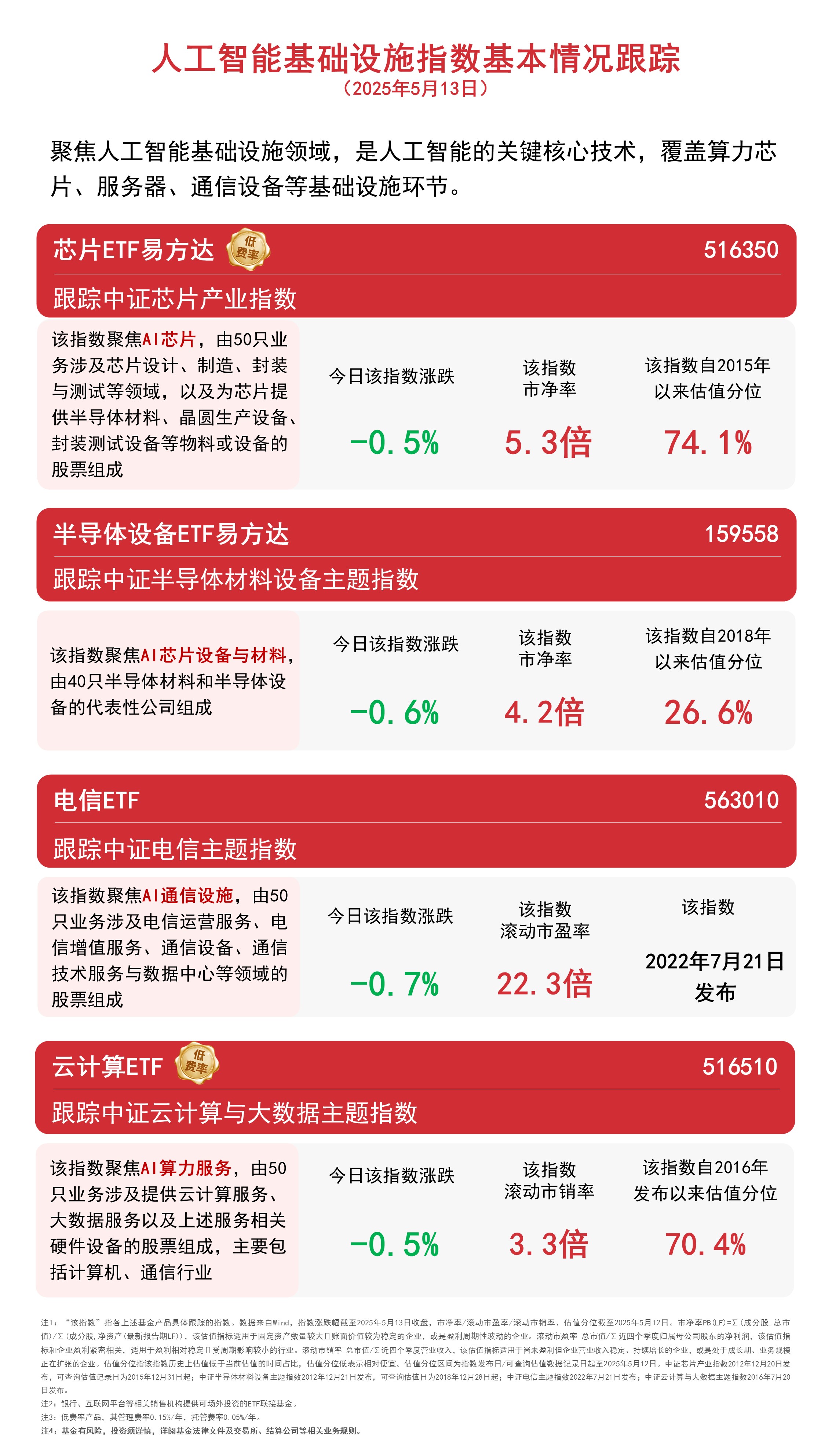 截至收盘,中证芯片产业指数、中证云计算与大数据主题指数均下跌0.5%,中证半导体材料设备主题指数下跌0.6%,中证电信主题指数下跌0.7%。 平安证券认为,全球大模型领域的竞争依然白热化,坚定看好AI主题的投资机会,当前Agent在企业端落地进度较为靠前,AI应用建议关注OA/ERP/编程/办公等领域;算力方面,Agent将带来更多的推理端应用需求,从而拉动推理端算力乃至整体算力需求向上。