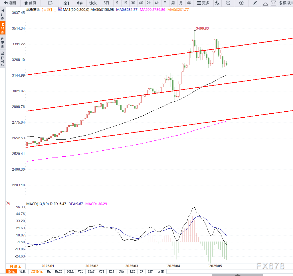 由于全球贸易情绪回暖,投资者风险情绪明显改善,使得传统避险资产黄金失去吸引力。金价自周初以来维持疲弱走势,周三亚洲时段延续下行,接近周内低点,但在美元走软的背景下仍暂时守住3200美元关口。 ![]() 反之,若金价反弹突破3265美元至3300美元区域,将缓解短线空头压力,并可能上探3317-3318美元甚至3345美元附近的技术阻力。 尽管避险需求减弱,但地缘政治风险仍未解除:俄罗斯与乌克兰本周将在伊斯坦布尔进行自2022年以来首次高级别会谈;美国务卿Marco Rubio及特使团队将参与相关对话;以色列军方周二晚称拦截了一枚由也门胡塞武装发射的高超音速导弹。 上述因素表明市场仍需保持警惕,限制了黄金的深度回调空间,周三美国经济日历清淡,市场将聚焦多位美联储官员的讲话。此外,全球风险情绪仍是短线推动黄金波动的关键因素。 ![]() 目前金价处于技术和基本面博弈状态。一方面,美联储年内降息预期及美元疲软构成支撑;另一方面,贸易乐观情绪和市场风险偏好上升压制避险需求。 若失守3200美元,黄金可能进入新一轮回调周期。保持谨慎,关注技术位突破及地缘消息演变。 ![]() |