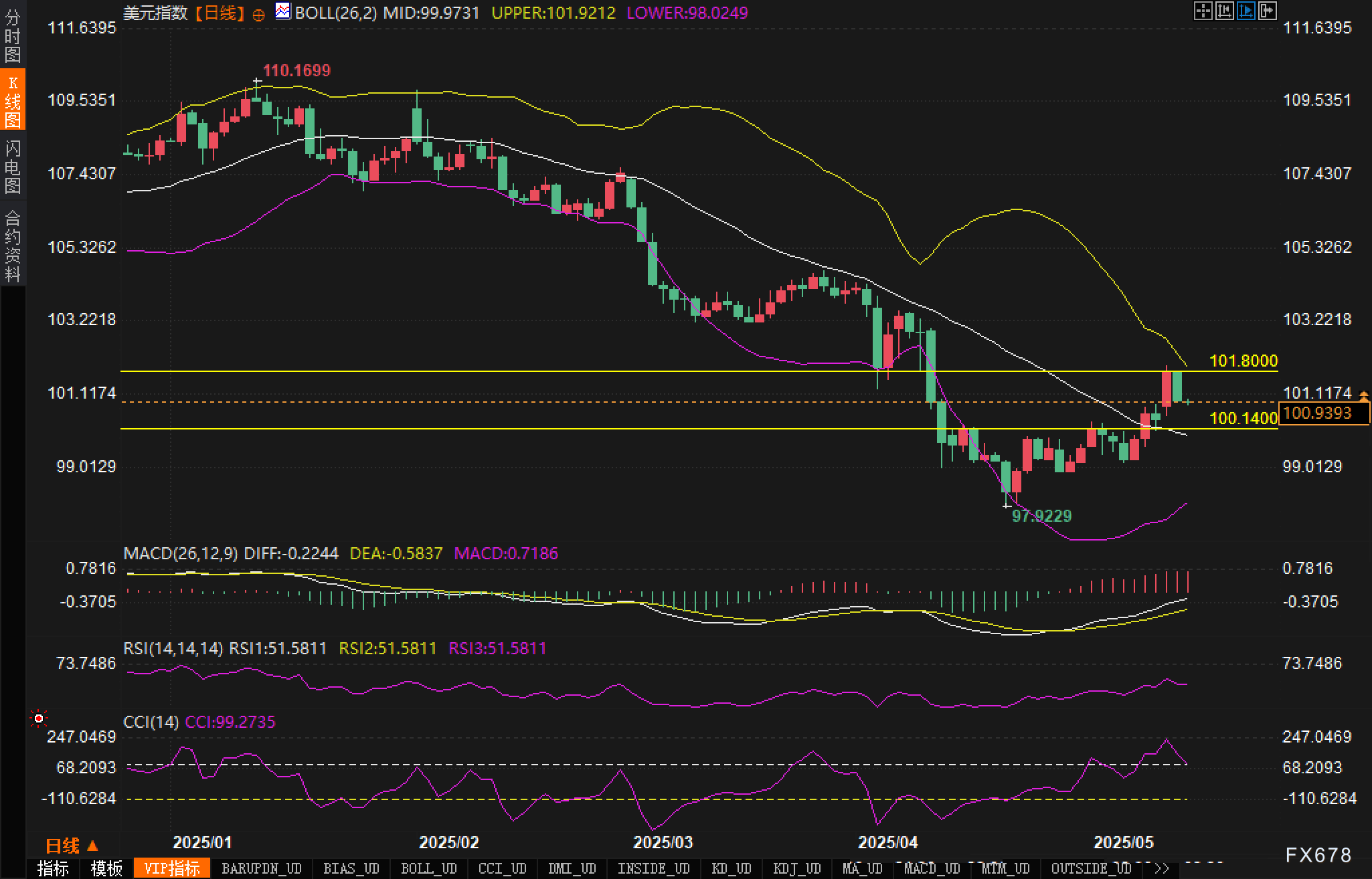 周三 5月14日 美元指数欧洲时段延续弱势格局 近期短暂反弹后再次回落 在关税缓和消息推动下的单日反弹昙花一现 温和的通胀数据让市场重启美元空头布局 美元指数全面下跌 基本面分析美元指数短暂上涨后大幅回落 这不 ...
