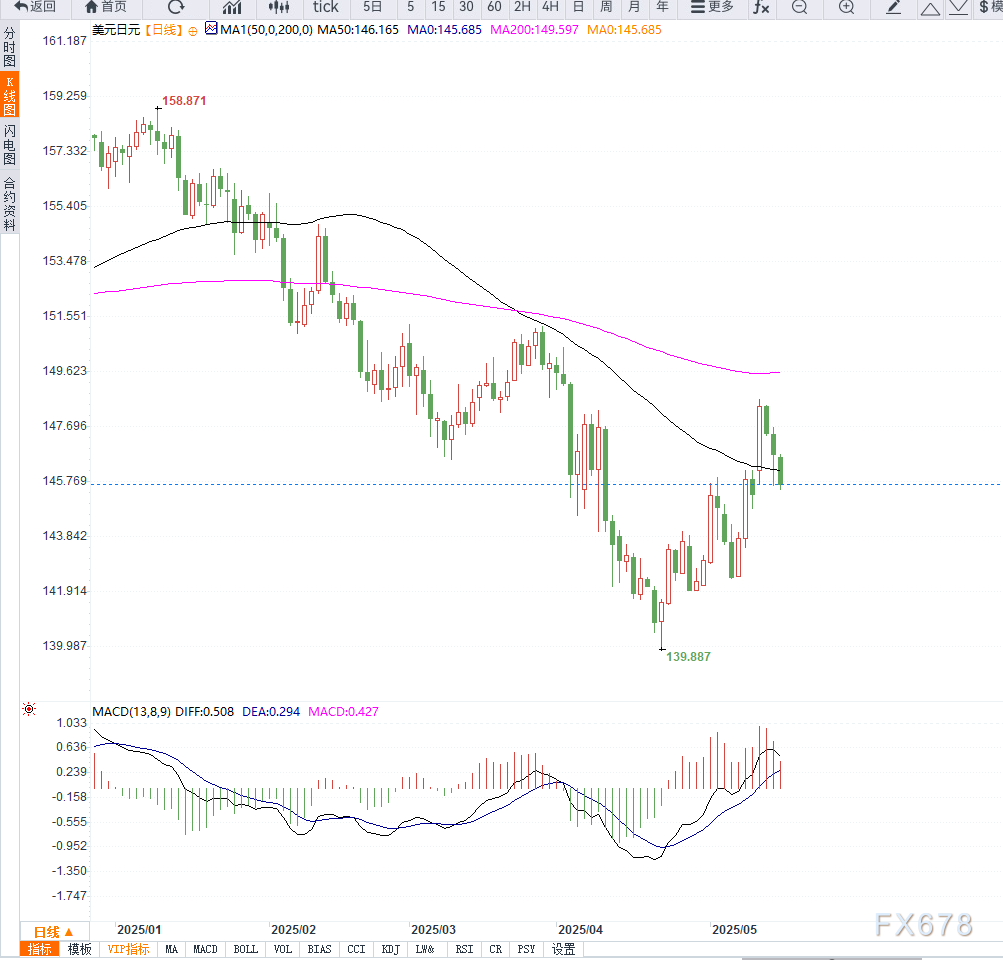 周三公布的日本PPI持续高于2%,强化了2025年再度加息的市场押注。BoJ副行长内田真一重申,如经济与物价按预期改善,将继续调升政策利率。 “若内需和薪资持续走高,我们不排除进一步上调目标利率。” ![]() 从日线图来看,USD/JPY在5月初冲高至148.65附近后形成“双顶形态”,并在失守20日均线(现位于146.40附近)后加速回落,显示顶部已初步确立。 当前价格运行在5日与10日均线之下,且两者呈死叉向下,显示短线空头占据主动。同时,MACD指标高位死叉,动能柱逐步扩大,暗示中期回调空间尚未结束。 若价格跌破144.70一线的50日均线与支撑共振区,则恐加剧回撤力度,打开指向142.25(4月低点)乃至140.80(3月支撑)的下行通道。反之,若强势收回并站稳146.60-147.00区间,则有望缓解短期下行压力,延续区间震荡格局。 ![]() 当前美元兑日元正处于基本面与技术面共振的“下坡段”。BoJ仍以“渐进式正常化”引导市场预期,但潜在的第三轮美日贸易会谈为日元增添新催化剂。 一旦今晚美国通胀数据与鲍威尔讲话不及鹰派预期,USD/JPY可能顺势跌破144.70,宣告4月以来的反弹行情终结。 ![]() |