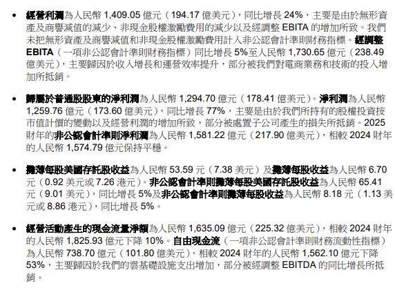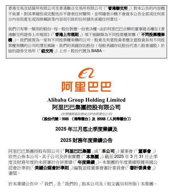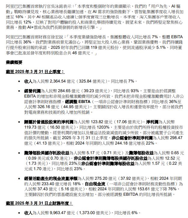 阿里巴巴集团公布2025财年第四季度及全年业绩,第四财季(截至3月底止季度)营收2,364.5亿元人民币,同比增7%,预估2,379.1亿元人民币;第四财季调整后每ADS收益12.52元人民币,上年同期10.14元人民币,预估12.7 ...