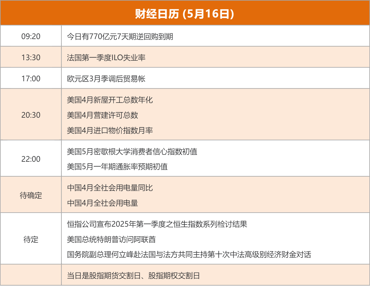 ![]() ![]() 1、央视网:国务院召开做强国内大循环工作推进会,中共中央政治局常委、国务院总理李强在会上强调,要深入贯彻习近平经济思想,按照党中央决策部署,深刻认识和准确把握当前经济形势,把发展的战略立足点放在做强国内大循环上,以国内大循环的内在稳定性和长期成长性对冲国际循环的不确定性,推动我国经济行稳致远,努力实现高质量发展。 2、新华社:中共中央办公厅、国务院办公厅近日印发《关于持续推进城市更新行动的意见》,要求坚持稳中求进工作总基调,转变城市开发建设方式,建立可持续的城市更新模式和政策法规,大力实施城市更新,促进城市结构优化、功能完善、文脉赓续、品质提升,打造宜居、韧性、智慧城市。 3、财联社:最高人民法院、证监会联合发布《关于严格公正执法司法服务保障资本市场高质量发展的指导意见》。意见提到,对于通过编传“小作文”等虚假信息扰乱市场秩序、损害他人权益的行为,受害人提起民事诉讼要求损害赔偿的,人民法院依法予以支持;构成犯罪的,依法追究刑事责任。 4、央视新闻:有记者就最近美国商务部下属的工业安全局发布公告称,在全球使用华为芯片都属于违反美国的出口管制进行提问。对此,商务部发言人表示,美方此举不利于双方企业长期互利可持续的合作和发展。中方敦促美方立即纠正错误做法,并将采取坚决措施维护中国企业正当权益。 5、央行:四部门召开科技金融工作交流推进会。会议强调,金融管理部门、科技部门和金融机构要深入贯彻党中央、国务院决策部署,落实落细构建科技金融体制的各项政策举措,探索构建同科技创新相适应的体制机制,全方位支持科技创新,大力投早、投小、投长期、投硬科技。 央视新闻:有记者就中美经贸磋商机制进行提问。对此,商务部发言人表示,中方对通过对话沟通解决经贸关切始终持开放态度。依据中美日内瓦会谈共识,双方同意建立经贸磋商机制,就经贸领域各自关切保持沟通。中方将适时发布相关消息。 央视新闻:商务部新闻发言人在例行新闻发布会上表示,中美经贸中方牵头人、国务院副总理何立峰与美方牵头人、美国财政部长贝森特和贸易代表格里尔,在瑞士日内瓦举行中美经贸高层会谈。双方围绕落实今年1月17日中美元首通话重要共识,进行了坦诚、深入、具有建设性的沟通,达成一系列重要共识,会谈取得实质性进展,双方达成《中美日内瓦经贸会谈联合声明》。下一步,中美双方将依据中美日内瓦会谈共识,就经贸领域各自关切保持沟通。 央视新闻:商务部发言人在例行新闻发布会上表示,关于美方针对进口汽车、钢铝的232关税,以及对进口药品发起232调查,中方认为,美方做法是典型的单边主义和保护主义行径,不仅损害他国权益,破坏以规则为基础的多边贸易体制,也无益于本国产业发展。中方敦促美方,尽快停止232关税措施,通过平等对话,妥善解决各方关切。 央视新闻:商务部言人表示,今年3月以来,有关部门已经多次发表声明强调,对长和集团出售港口交易将依法进行审查,保护市场公平竞争,维护社会公共利益。交易各方不得采取任何方式规避审查,未获批准前,不得实施集中,否则将承担法律责任。希望有关企业对此保持清醒认识,审慎行事。 央行:中国人民银行、香港证券及期货事务监察委员会、香港金融管理局在充分总结“互换通”运行经验、认真听取境内外投资者意见建议的基础上,拟进一步丰富“互换通”产品类型。一是延长合约期限,延长利率互换合约期限至30年,满足市场机构多样化风险管理需求;二是扩充产品谱系,推出以贷款市场报价利率(LPR)为参考利率的利率互换合约。两地金融市场基础设施机构将陆续上线以上优化措施。 澎湃新闻:外交部发言人在例行记者会上表示,为进一步便利中外人员往来,中方决定扩大免签国家范围,自2025年6月1日起至2026年5月31日,对巴西、阿根廷、智利、秘鲁、乌拉圭持普通护照人员试行免签政策。上述五国持普通护照人员来华经商、旅游观光、探亲访友、交流访问、过境不超过30天可免办签证入境。 央视网:国家税务总局最新增值税发票数据显示,4月份,全国企业销售收入增速加快,同比增长4.3%。分类来看,4月份,工业企业销售收入同比增长3.7%,其中制造业销售收入同比增长4.4%。受“两新”等政策带动,电气机械、计算机、仪器仪表等制造行业销售收入增幅超过12%。代表新质生产力的高技术产业、数字经济核心产业销售收入保持两位数以上增长。 财联社:工信部部长李乐成主持召开第十四次制造业企业座谈会,聚焦加快推动工业母机产业高质量发展,听取工业母机企业情况介绍和意见建议。李乐成表示,要高度重视产业生态建设,避免“内卷式”竞争、同质化发展。要发挥领军企业带动作用,建立更紧密的产学研用合作关系,强化产需对接,促进大中小企业融通发展。 央视网:据水利部,今年以来,“两重”建设水利重大项目加快实施,1至4月完成水利建设投资2943.6亿元,水利投资规模继续保持较高水平。1至4月,全国还新开工10项重大工程,包括大型灌区建设与现代化改造、大江大河治理工程、重要调蓄结点工程等。目前,全国水利基础设施建设进展顺利。 央视网:国际标准化组织近期正式发布由我国牵头制定的《老龄化社会老龄化包容性数字经济通用要求与指南》国际