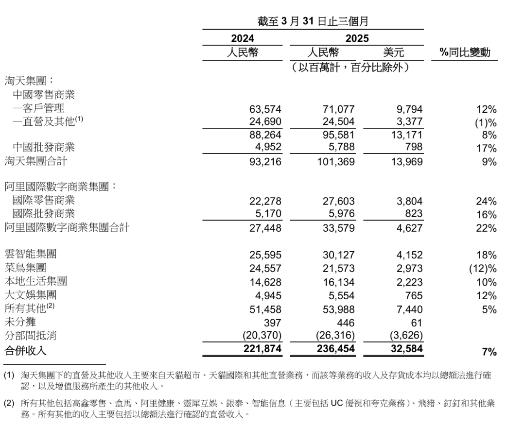 5月15日,阿里巴巴集团发布2025财年第四季度及全年(截至2025年3月31日止季度及年度)财报。数据显示,“AI驱动”持续释放发展动能,阿里核心业务增长继续提速。对比2024财年同期,阿里云第四财季收入增速从3%提高到18%,AI相关产品收入连续七个季度实现三位数增长。 与此同时,阿里继续加大回购力度。根据股份回购计划,阿里巴巴2025财年以119亿美元回购了11.97亿股普通股,成为回购力度最大的中概股之一。同时,阿里宣布派发2025财年年度股息和特别股息总计46亿美元,持续兑现提升股东回报的承诺。 在财报发布后的分析师电话会上,阿里巴巴集团CEO吴泳铭表示,阿里云持续深耕和保持行业领先地位,近期中国工商银行正式选择阿里云PolarDB数据库作为其全行级交易型分布式数据库,这代表着对业务性能和技术要求最严格的顶级金融企业对阿里云技术能力的认可。 “2026财年,我们将继续聚焦电商、‘AI+云’的核心业务增长,面向中长期,塑造以科技为核心动力的第二增长曲线。”吴泳铭说。 在电话会上,吴泳铭还分享了他对于AI两大最新趋势的预判:一是在大中型企业,AI应用开始从内部系统向用户侧场景渗透;二是积极使用AI产品的客户,从大中型企业延展到大量中小企业。 阿里云季度收入增长18% 创三年来最快增速 数据显示,第四财季(截至2025年3月31日止季度),阿里巴巴营收为2364.54亿元(人民币,下同),同比增长7%,非公认会计准则净利润为298.47亿元,相较2024年同期的244.18亿元增长22%。(注:阿里巴巴第四财季营收略低于市场预估的2379.1亿元人民币)。 ![]() 2025财年(截至2025年3月31日止财务年度),阿里巴巴实现收入9963.47亿元,同比增长6%,经调整EBITA(一项非公认会计准则财务指标)同比增长5%至1730.65亿元,非公认会计准则净利润为1581.22亿元,相较2024财年的1574.79亿元保持平稳。 分业务来看,在AI需求的强劲推动下,阿里云收入增长继续加速。本季度,阿里云收入同比增长18%达到301.27亿元,创下三年来的最快增速,其中AI相关产品收入连续第七个季度保持三位数的同比增长。 ![]() 2025财年,阿里云收入达到1180亿元,同比增幅达到了11%。这一反弹得益于AI热潮的推动。据市场分析机构IDC最新报告,阿里云市场份额已连续三个季度回升。 AI加速赋能千行百业 吴泳铭透露两大新趋势 财报表示,阿里云增长势头主要由更快的公共云收入增长带动,包括AI相关产品的采用增加。该季度内,AI相关产品收入连续第七个季度保持三位数的同比增长,AI赋能千行百业的同时,一批超级客户携手阿里云,在深度用云方面取得了重大进展。 今年3月,中国联通、中国移动、浙江省政府分别与阿里巴巴签署战略合作协议。在科研领域,中国科学院青藏高原研究所近日联合阿里云打造了水能粮大模型“洛书”。基于通义大模型,Vivo发布行业内首款多模态大模型视觉辅助产品,中国一汽打造汽车行业首个面向全集团运营管理的AI Agent,招商银行在多个业务场景落地AI应用,小鹏、蔚来和极氪等品牌升级智能座舱功能,数字重庆三级治理中心系统正在构建AI智能体体系,国家天文台发布了国际首个太阳大模型“金乌”。 “本季度,我们的AI产品行业渗透在迅速扩大。”吴泳铭在分析师电话会上表示:“除了比较快使用AI产品的互联网、智能汽车、金融、在线教育外,很多传统行业,如养殖业、传统制造业等,也都在积极探索AI应用,需求增长同样显著。”吴泳铭在电话会上透露。 今年4月,阿里开源新一代混合推理模型Qwen 3(简称千问3)。截至4月底,阿里通义已开源200余个模型,全球下载量超3亿次,千问衍生模型数超10万个,成为全球最大的开源模型族群。 就在财报发布前的5月14日晚,阿里正式开源通义万相Wan2.1-VACE,这是业界功能最全的视频生成与编辑模型,单一模型可同时支持文生视频、图像参考视频生成、视频重绘、视频局部编辑、视频背景延展以及视频时长延展等全系列生成和编辑能力。 在电话会上,吴泳铭还分享了AI应用两大最新趋势:一是在大中型企业,AI应用开始从内部系统向用户侧场景渗透;二是积极使用AI产品的客户,从大中型企业延展到大量中小企业。 ![]() 多个业务线加速AI升级 本季度,阿里巴巴正式完成对高鑫零售和银泰百货的出售,基本形成了“AI+云”、电商、其他互联网平台业务的发展阵型。记者注意到,以通义为底座,阿里多个业务线正在加速AI升级。 其中,淘天AI驱动的广告工具“全站推广”在商家的渗透率提升,令商家的市场营销效率得到提升。基于通义大模型最新成果,AI旗舰应用夸克全面升级,推出“AI超级框”,上新“拍照问夸克”,升级发布“深度搜索”等功能。 阿里巴巴国际站面向海外买家推出的原生AI应用Accio的企业用户已超百万。截至5月初,闲鱼全线AI产品已覆盖近2200万用户,通过智能托管服务累计售出的GMV已达6.4亿元。此外,高德发布全球首个基于地图的AI导航智能体(NaviAgent),飞猪发布旅行AI产品“问一问”,饿了么发布“商家AI入驻助手”、上线“骑手AI助手”,菜鸟持续布局“AI+物流”。 具体到财报数据方面,截至2025年3月31日止季度,淘天集团的客户管理收入同比增长12%至710.77亿元。淘天继续投入用户增长和体验提升,实现更强劲的新买家增长,88VIP会员超5000万。 ![]() 同期,在跨境业务的强劲表现带动下,阿里国际数字商业集团收入同比增长22%至335.79亿元,运营效率继续提升。本地