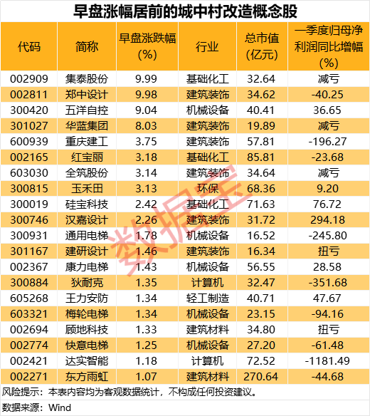 5月16日早盘,A股城中村改造板块部分概念股异动上涨。 重要文件发布 中共中央办公厅、国务院办公厅日前印发的《关于持续推进城市更新行动的意见》(以下简称《意见》)提到,到2030年,城市更新行动实施取得重要进展,城市更新体制机制不断完善,城市开发建设方式转型初见成效,安全发展基础更加牢固,服务效能不断提高,人居环境明显改善,经济业态更加丰富,文化遗产有效保护,风貌特色更加彰显,城市成为人民群众高品质生活的空间。 在推进城中村改造方面,《意见》提到,做好历史文化风貌保护前期工作,不搞大拆大建,“一村一策”采取拆除新建、整治提升、拆整结合等方式实施改造,切实消除安全风险隐患,改善居住条件和生活环境。加快实施群众改造意愿强烈、城市资金能平衡、征收补偿方案成熟的城中村改造项目。 5月16日早盘,A股城中村改造板块部分概念股异动上涨,集泰股份、郑中设计涨停,五洋自控、华蓝集团涨幅居前,分别上涨9.04%、8.03%。 ![]() 城中村改造位列“三大工程”之一,近年来,我国持续推出政策,加快城中村改造等城市更新类项目。住房和城乡建设部数据显示,2024年,全国新开工改造城镇老旧小区5.8万个,超过此前计划的5.4万个,分地区来看,北京、广东、上海等11个地区2024年实际开工改造城镇老旧小区超额完成计划。 去年10月,住建部在新闻发布会上表示,将通过货币化安置等方式新增实施100万套城中村改造、危旧房改造。方正证券研报测算,100万套城中村与危旧房改造目标约涉及改造规模1.1亿m²,货币化安置资金需求约为1.4万亿元,假设其中80%的货币化安置款会再次流入商品房市场,共将拉动1.1万亿元商品住宅销售额。 社保基金重仓这些概念股 据证券时报·数据宝统计,A股中布局城中村改造业务的个股共有116只,涉及房屋建设、装修装饰、电梯等通用设备、供水改造等多个方面。业绩上来看,近半数概念股今年一季度业绩向好,建研设计、城投控股等10股扭亏为盈;友发集团、深物业A等31股归母净利润同比增长;集泰股份、华蓝集团等13股减亏。 友发集团一季度净利润同比增幅居首,公司实现归母净利润1.33亿元,同比增长9680.17%,公司此前在投资者问答平台上表示,城中村改造工作将有利于明显提升钢管的需求总量。公司作为国内最大的焊接钢管研发、生产、销售企业,连续18年焊接钢管产销量全国第一。 建研设计一季度实现扭亏为盈,归母净利润达到1081.05万元。公司在投资者问答平台上表示,公司在城市更新专项设计领域形成了自身特色,具备较好的城中村改造等城市更新类项目设计能力,近年来承接了“华润置地华中大区武汉长丰村城中村改造K2地块项目设计咨询”、“五河县城南10号地块棚户区改造项目规划设计”等诸多城市更新类项目。 部分房地产、建筑材料行业的概念股估值较低,备受社保基金青睐,数据显示,17只概念股一季度末获得社保基金重仓,其中13股社保基金持仓市值在1亿元以上,中国建筑、保利发展、广联达社保基金持仓市值居前,分别达到10.79亿元、8.98亿元、6.11亿元。 ![]() (文章来源:证券时报网) |