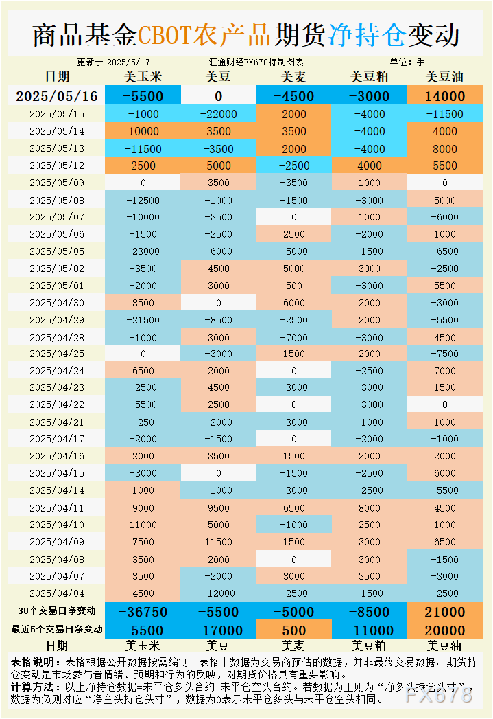 周六 5月17日 芝加哥期货交易所 CBOT 谷物期货市场隔夜呈现分化格局 受到基本面因素 持仓变动及国际交易动态的综合影响 最新数据显示 5月16日CBOT最活跃玉米期货 Cv1 收跌5美分至4 43 1 2美元 蒲式耳 大豆期货 ...