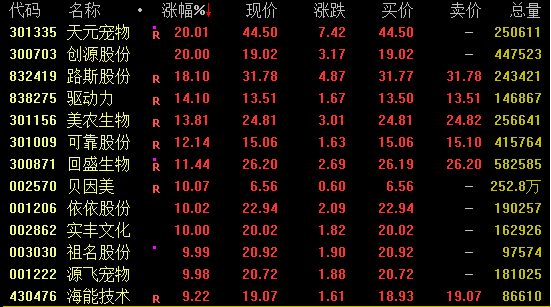 A股今日(5月20日)全线上扬,市场整体活跃,成交量有所放大;港股亦走高,两大股指均涨超1%。 具体来看,A股三大股指盘中发力拉升,创业板指一度涨超1%。截至收盘,沪指涨0.38%报3380.48点,深证成指涨0.77%报10249.17点,创业板指涨0.77%报2048.46点,北证50指数涨1.22%,沪深北三市合计成交12114亿元,较昨日(5月19日)增加923亿元。 场内超3800股飘红,宠物经济概念爆发,天元宠物(301335)20%涨停创出新高,路斯股份(832419)一度涨停亦创新高;合成生物概念再度活跃,科兴制药(688136)涨超15%,美农生物(301156)涨近14%;创新药概念走强,一品红(300723)、三生国健(688336)20%涨停,荣昌生物(688331)、益方生物(688382)涨约16%;AIGC概念崛起,浙文互联(600986)、梦网科技(002123)、实丰文化(002862)等涨停,郑中设计(002811)斩获4连板。近日强势的航运概念回落,凤凰航运(000520)、连云港(601008)、宁波远洋(601022)跌停。此外,渝三峡A(000565)、利君股份(002651)跳水跌停。 港股方面,截至收盘,恒生指数涨1.49%,恒生科技指数涨1.15%。个股方面,三生制药(01530)涨超32%,盘中一度暴涨超50%;石药集团(01093)、翰森制药(03692)涨约6%,小米集团(01810)涨近5%,今日登陆港交所的宁德时代(03750)首日涨超16%,收报306.2港元/股,成交近83亿港元。 宠物经济概念爆发 宠物经济概念盘中强势拉升,截至收盘,天元宠物涨停再创新高,路斯股份涨超18%,盘中一度涨停创出新高;贝因美(002570)、依依股份(001206)、源飞宠物(001222)等均涨停,佩蒂股份(300673)涨约7%。 ![]() 机构表示,宠物市场近年持续保持高增速,头部上市公司受益于国产替代效应的推进以及产品力、品牌力的不断提升,带动销量同比显著高增,且产品价格带同步上移,国内自主品牌稳定盈利且毛利净利不断改善。 中信证券表示,海外订单稳健增长、鸡肉成本下行、人民币贬值、国产宠粮自主品牌整体增长提速、国货龙头盈利能力持续提升等背景下,2024年、2025年一季度宠物板块业绩持续新高。展望后续,预计海外需求稳健,国内市场国货替代持续,2025年宠物板块业绩有望持续增长。宠物经济是稀缺赛道,需求韧性强,国内市场目前仍处“大行业、小龙头”阶段,龙头集中程度有望进一步提升,看好龙头通过产品创新、品牌和渠道建设不断提升市场份额。 创新药概念拉升 创新药概念盘中走势活跃,截至收盘,一品红20%涨停创出新高,三生国健亦涨停,荣昌生物、益方生物涨约16%。 ![]() 5月20日,三生国健宣布,公司及关联方三生制药和沈阳三生制药有限责任公司共同授予辉瑞PD-1/VEGF双特异性抗体SSGJ-707在全球(不包括中国内地)的独家开发、生产、商业化权利。辉瑞保留通过支付额外付款获得在中国大陆商业化许可产品的权利。据悉,SSGJ-707是基于CLF2专利平台开发的靶向PD-1/VEGF双特异性抗体,可同时抑制PD-1和VEGF双靶点。II期临床阶段性分析数据显示,SSGJ-707在非小细胞肺癌(NSCLC)患者的治疗上获得了优异的客观缓解率(ORR)和疾病控制率(DCR),无论单药还是与化疗联用,均展示出显著的抗肿瘤活性和良好的安全性,具有best-in-class(同类最优)的潜力。 受到该消息影响,港股三生制药盘中一度大涨超50%,收盘涨幅仍在32%以上。 ![]() 此外,港股创新药板块多股今日亦大幅上涨。截至收盘,荣昌生物(09995)涨超16%,基石药业-B(02616)涨超15%,欧康维视生物-B(01477)涨超12%,思路迪医药股份(01244)、晶泰控股(02228)、亿胜生物科技(01061)、石药集团、翰森制药等涨超5%。 ![]() 另外,近日,美国总统特朗普签署行政令,要求制药企业按照可比发达国家“最惠国”价格在美国销售药品。 东海证券指出,该行政令的落地尚面临司法挑战和执行细节的调整,短期仍有不确定性。长期来看,若现行国际药价梯度被打破,或推动全球药企调整定价策略;我国创新药具备研发成本低、效率高的优点,或成为BD交易首选,中国有望成为低成本研发与生产中心,加速从“仿制跟随”向“创新主导”转型。大型跨国药企在更严格的定价体系下可能积极寻求降低研发生产成本的路径,我国CXO产业链或将进一步巩固市场地位。 航运概念回调 航运概念盘中大幅回落,截至收盘,国航远洋(833171)跌近18%,凤凰航运、连云港、宁波远洋跌停,锦江航运(601083)、宁波海运(600798)跌超8%。 ![]() 具体来看,5连板的连云港尾盘跳水跌停,公司19日晚间提示,公司目前生产经营活动正常,行业政策没有发生重大调整,不存在其他应披露而未披露的重大信息。2025年第一季度公司实现归属于上市公司股东的净利润为2279.43万元,同比下降48.01%;归属于上市公司股东的扣除非经常性损益的净利润为2231.53万元,同比下降43.22%,请投资者注意投资风险。 近5日斩获4个涨停板的宁波远洋16日晚间亦提示,公司目前生产经营活动正常,行业政策等没有发生重大调整、生产成本和销售等情况没有出现大幅波动、内部生产经营秩序正常。公司未发现存在对公司股票交易价格可能产生重大影响的媒体报道及市场传闻。 (文章来源:证券时报) |