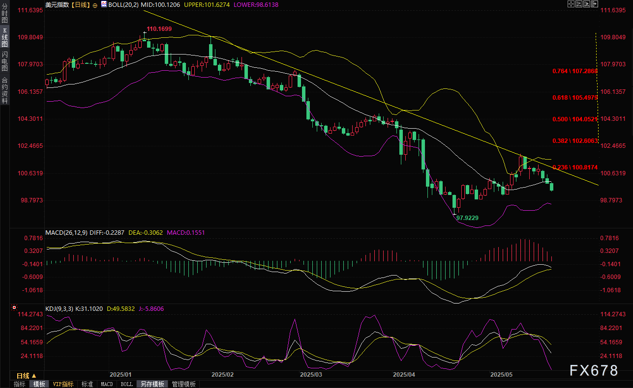 全球外汇市场正经历着惊心动魄的波动浪潮 周三 5月21日 交易时段 美元指数延续跌势至99 42关口 创下自5月7日以来的三周最低点 单日跌幅高达0 58 虽然尾盘略有回升至99 55附近 但这已是美元连续第三日呈现颓势 市场 ...