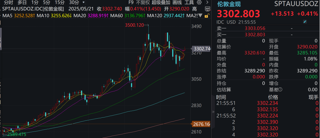 金价止跌回暖,四川黄金遭股东合计计划减持不超5.5%。 国际金价阶段性回调后,近日启动回暖,截至5月21日晚间,伦敦现货黄金价格已站上3300美元/盎司。 伴随国际金价波动,A股市场黄金概念股也扭转颓势。5 ...