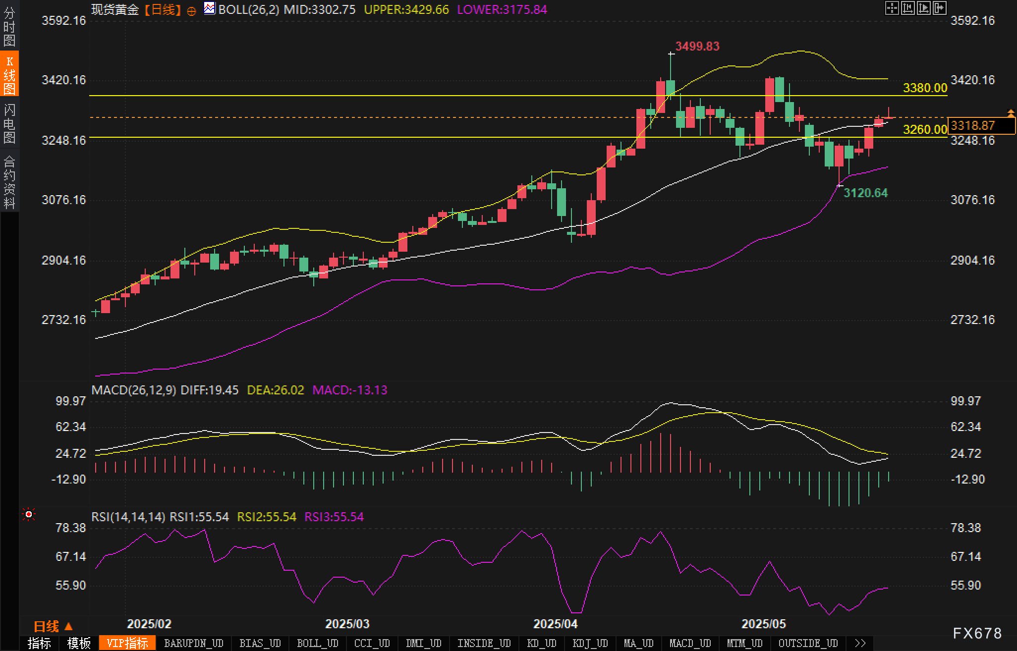 周四(5月22日),现货黄金在触及近两周高位3345美元区域后出现技术性回撤,目前欧洲时段围绕3320美元附近震荡整理。尽管美元指数的温和反弹给金价带来一定下行压力,但市场对美联储进一步降息的预期以及对美国财政赤字不断恶化的担忧,为非收益性的黄金资产提供了重要支撑。当前金价已站稳3300美元关键心理关口上方,技术面呈现多头占优的格局。 ![]() 美元指数近期受到财政担忧拖累持续走软,加之市场预期美联储将在今年进一步降息以应对通胀放缓和经济增长前景黯淡,美元的持续疲弱为金价提供了有利的宏观环境。地缘政治层面,以色列军方继续对加沙地带进行军事行动,而特朗普据报告诉欧洲领导人,俄罗斯总统普京尚未准备结束与乌克兰的冲突,这些因素都为避险资产黄金提供了额外的支撑动力。 技术面: 从日线图技术结构来看,现货黄金呈现出典型的上升趋势格局,价格运行在上升通道内。布林带指标显示,金价目前位于布林中轨3302.75美元上方,布林上轨位于3429.66美元,布林下轨位于3175.84美元,整体通道呈现扩张态势,暗示波动率有所增加。 ![]() 相对强弱指数RSI显示,14日RSI为55.54,位于中性区域略偏强势,既未出现超买也未显示超卖状态,为后续行情发展留下空间。当前RSI走势呈现温和上行态势,与价格走势形成正向共振。 从关键价位来看,3380美元水平线构成了重要的阻力位,而3260美元则成为关键支撑位。金价在3300美元附近存在一个重要的技术节点,这一区域曾多次扮演支撑和阻力的角色。 市场情绪观察 当前市场情绪呈现谨慎乐观的特征。一方面,美国财政状况恶化的担忧以及地缘政治紧张局势为避险资产提供了持续的买盘支撑;另一方面,美元的温和反弹显示市场仍存在一定的分歧。权益市场的整体疲弱表现反映出市场对风险资产的谨慎态度,这种风险厌恶情绪有利于黄金等传统避险资产。 市场对美联储货币政策路径的预期相对明确,进一步宽松的预期为贵金属提供了有利的利率环境。同时,全球经济增长放缓的担忧以及通胀压力的持续存在,使得黄金作为价值储存工具的吸引力进一步增强。 后市展望 短期来看,黄金可能继续在3300-3380美元区间内震荡整理。技术面上,金价需要在3300美元关键支撑位上方保持稳定,才能为后续上攻奠定基础。若能有效突破3380美元阻力位,则有望挑战3429美元附近的布林上轨水平。 中长期而言,美国财政赤字问题的结构性恶化以及全球央行货币政策的宽松趋势,为黄金的长期牛市提供了坚实的基本面支撑。地缘政治风险的持续存在也将为避险需求提供源源不断的动力。 空头风险主要来自美元的超预期反弹以及全球风险情绪的显著改善。若美国经济数据出现超预期表现,可能会推迟市场对美联储降息的预期,从而对金价构成压力。此外,地缘政治紧张局势的缓解也可能削弱避险需求。 技术层面,3260美元构成关键支撑位,一旦跌破该水平,金价可能面临更深度的调整压力,下一个支撑位将关注3200美元整数关口。 注:本文基本面内容据路孚特报道展开。 ![]() |