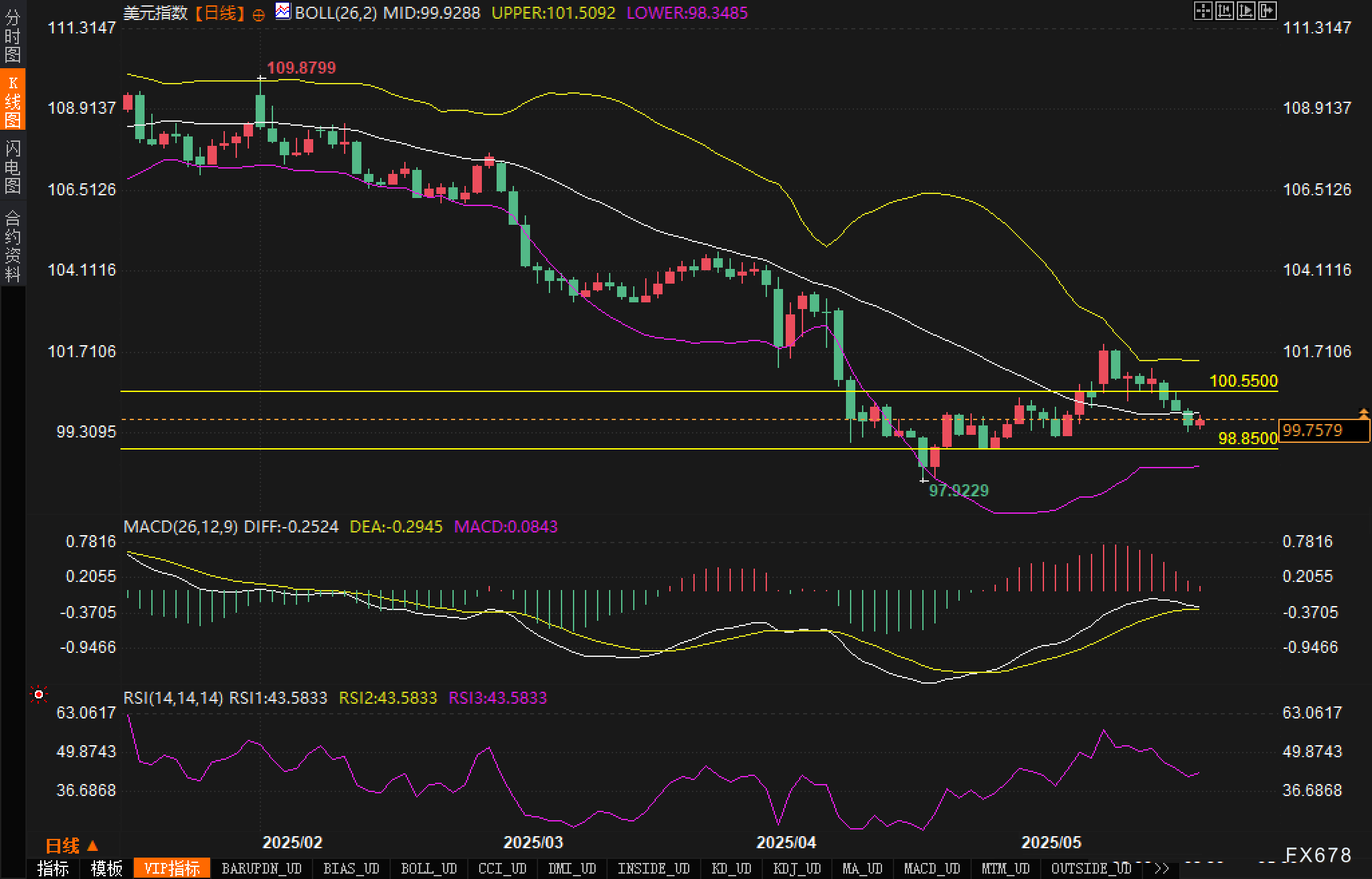 周四 5月22日 美元指数低位震荡 当前欧洲时段交投于99 8附近 市场焦点从G7财长会议转向美国税收法案进展 财政赤字担忧持续发酵 推动美债收益率攀升的同时却未能提振美元价格 这一反常现象正重塑全球资本流向格局 基 ...