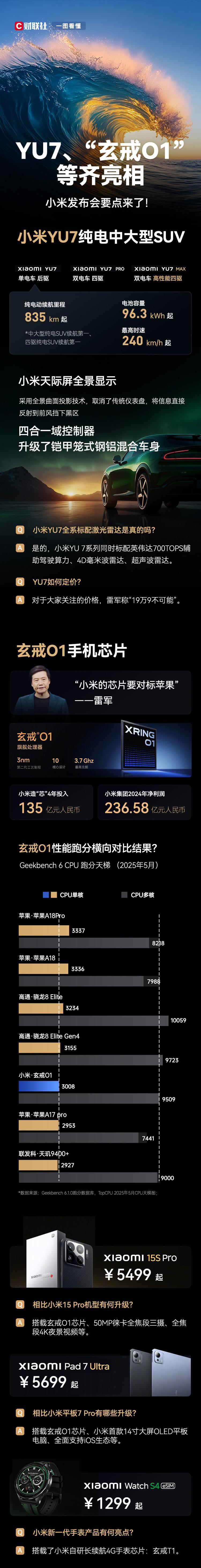 一图看懂:YU7、玄戒芯片等齐亮相 小米新品发布会亮点来了