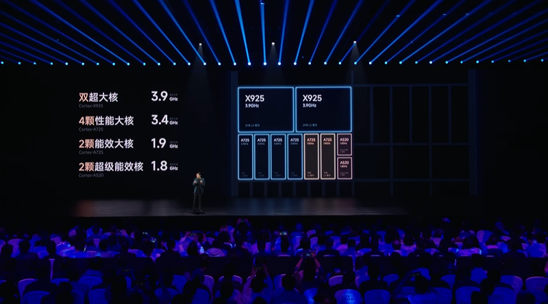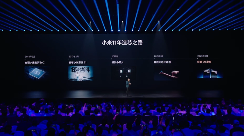 5月22日,小米举办15周年战略新品发布会,本次发布会最受市场关注的就是其自研芯片玄戒O1 3nm旗舰处理器和SUV车型小米YU7。 在本次发布会的上半场,小米创始人雷军用了相当长的时间介绍了小米最新的自研芯片。他坦言,这像是“今天交作业,心里多少还是有点紧张”。 ![]() 从雷军的介绍来看,本次发布的玄戒O1旗舰处理器在多个指标上能与苹果最先进芯片媲美,但同时也有部分指标仍在追赶。 在上半场发布会最后,雷军表示:“如果小米想成为一家伟大的硬核科技公司,芯片是我们必须攀登的高峰,也是我们绕不过去的一场硬仗。面对芯片这一仗,我们别无选择。”雷军称,在硬科技领域,小米是后来者,后来者一开始肯定不完美,总会被嘲笑、被怀疑,但后来者总有机会,“我相信这个世界终究不会是强者恒强,后来者一定会有机会”。在上半场发布会最后,雷军声音似有哽咽,他充满激情地说:“玄戒O1已经开始,开弓没有回头箭,我们深知这其中的困难,我们做好了准备,无论前方有多少困难,我们都决不放弃,我们一定会坚持下去。虽然跟世界级巨头相比,还有很大的差距,但我始终相信,只要开始追赶,我们就走在赢的路上。我觉得每个人都会给你说这个事情有多难,不要怕,坚持下去,坚持到最后的胜利。” ![]() 在发布会上小米宣布,未来五年还预计再投入2000亿元研发费用,较过去五年(2021—2025年)的1020亿元研发投入实现翻倍。 ![]() 芯片全面对标苹果 据介绍,玄戒O1旗舰处理器是小米自主研发设计,由小米15S Pro首发搭载,采用第二代3nm先进工艺制程,拥有190亿晶体管,芯片面积仅109mm²,实验室跑分突破300万,拥有目前手机芯片第一梯队的性能表现。 ![]() 同时,玄戒O1旗舰处理器还拥有第一梯队的旗舰性能与功耗。采用十核四丛集CPU架构,Cortex-X925双超大核,峰值性能提升36%,四丛集高效接力,让强劲性能表现也能兼顾超低功耗,采用16核GPU,搭载最新Immortalis-G925,带来强劲的图形处理性能,GPU动态性能调度技术,功耗大幅降低,可以根据运行场景,动态切换GPU运行状态。 ![]() 雷军表示,4年前小米开始做研发时,定的目标确实有点高。比如要求必须是最高端的旗舰处理器,要采用全球最先进的工艺制程,甚至要求要对标苹果芯片。“其实我们当时的想法非常的简单,我们为什么定这么高的目标?我们知道这个目标如此之高,有可能我们做不到,但是如果我们不去试一试,我们可能永远也不知道我们有没有机会赶上。” “今天交作业心里多少还是有点紧张,因为我们干了四五年的时间,今天答出来就是等待着大家的评价。”雷军表示,对于处理器而言,不仅仅要看性能,能耗表现也特别关键。苹果一直是能耗表现的天花板,我们与苹果的确有差距,但是非常接近了。“大家平时玩游戏需要的是持续的高性能,最关键的就是4颗性能大核的表现,在这一方面,我们跟苹果应该已经不相上下了。” 发布会上半场,雷军介绍了三款搭载小米自主研发设计的玄戒芯片产品,分别是小米15S Pro、小米平板7 Ultra、小米手表S4。其中,小米15S Pro售价5499元起,小米平板7 Ultra售价5699起,小米手表S4售价1299元起。 ![]() ![]() 回顾造芯路,未来10年至少投资500亿元 在本次发布会上,雷军表示本次发布的手机、平板、手表产品全部搭载了玄戒芯片。雷军表示,这一成果并不容易,“在15周年这么重要的日子里面,我们芯片团队能够按计划拿出首款大芯片玄戒O1,还同时发布了手机和平板,相当的不容易,甚至基带研发也取得了阶段性的进展。” 雷军回顾到,小米的芯片之路是从2014年9月份开始,那时小米立项了澎湃OS做了4年时间,但在遇到了巨大的困难后暂停了。后来,小米转型做了一系列的小芯片,直到2021年年初,小米才下决心重启了大芯片的研发。 ![]() “到今天为止,小米的芯片之路走了整整11年,小米15年的创业,其中芯片干了11年,这11年有多少艰辛,有多少汗水,有多少无法用语言来表达的痛苦,坚持11年又需要多大的投入,做这个决定又需要何等的勇气和决心。”雷军说。 “也许有人会问造大芯片这么难,小米为什么要干呢?11年前我们就反复问过自己。这一次在4年半前重启的时候,其实我们又讨论了半年时间,最后这个问题我们彻底想明白了,原因很简单:如果小米想成为一家伟大的硬核科技公司,芯片是我们必须攀登的高峰,也是我们绕不过去的一场硬仗。面对芯片这一仗,我们别无选择。” 雷军还解释了为何造大芯片特别困难。首先是周期特别长,投入特别大。雷军称,在这一轮重启过程中,小米做了4年多时间,已经花了135亿元,新团队超过了2500人,今年的研发预算在芯片方面就超过了60亿元。“其实以这个人数和投入规模,在芯片设计公司里面,无论是人数还是投入规模都在国内前三。” ![]() 同时,更残酷的是大芯片业务的生命周期很短。雷军表示:“它是一年一迭代,到了第二年就过时了,就贬值了,所以如果没有足够的装机量,再好的芯片也是赔钱的买卖。这就要求大芯片必须在一两年时间里面卖到上千万台,是要到这个规模你才能生存下去。所以过去十几年的竞争,在大芯片领域里面可能死掉了上百家公司。今天能做先进制程旗舰SOC的全球都只有三家了。” “在硬核科技的探索的路上,小米是一个后来者,也是一个追赶者,作为后来者,一刚开始肯定不完美,总会被嘲笑被怀疑,这些都是意料之中的事情。但我相信这个世界终究