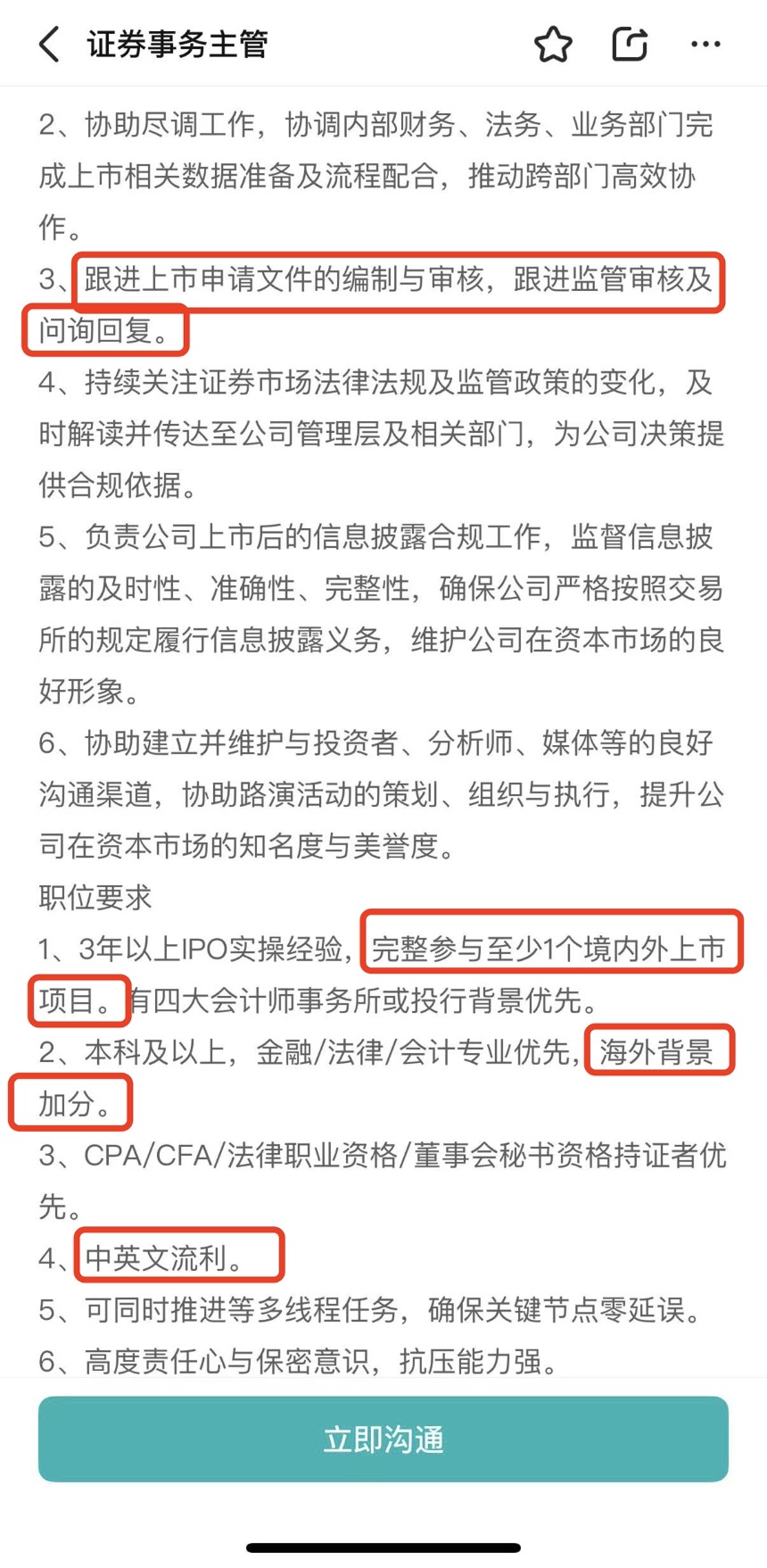 智元机器人(经营主体:上海智元新创技术有限公司)资本市场层面出现进展。 《科创板日报》记者注意到,智元机器人正式开始招聘证券事务主管,招聘软件显示该职位为5日内新发布,岗位职责为协助推进IPO时间表 ...