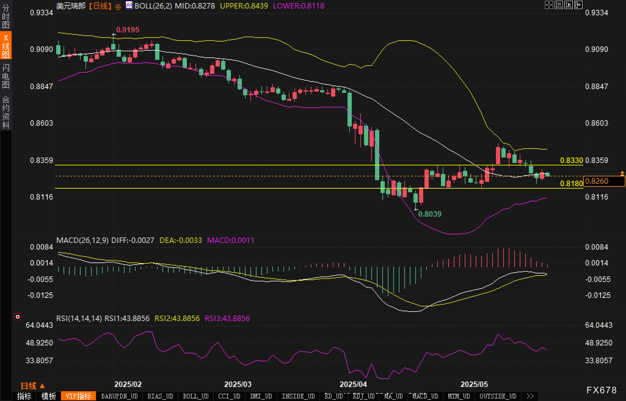 周五 5月23日 美元兑瑞郎在欧洲交易时段围绕0 8260水平震荡整理 汇价回撤了前一交易日录得的部分涨幅 美元指数 DXY 交投于99 4附近的两周低位 主要受美国债务担忧加剧以及特朗普 一项宏伟法案 即将提交参议院审议的 ...