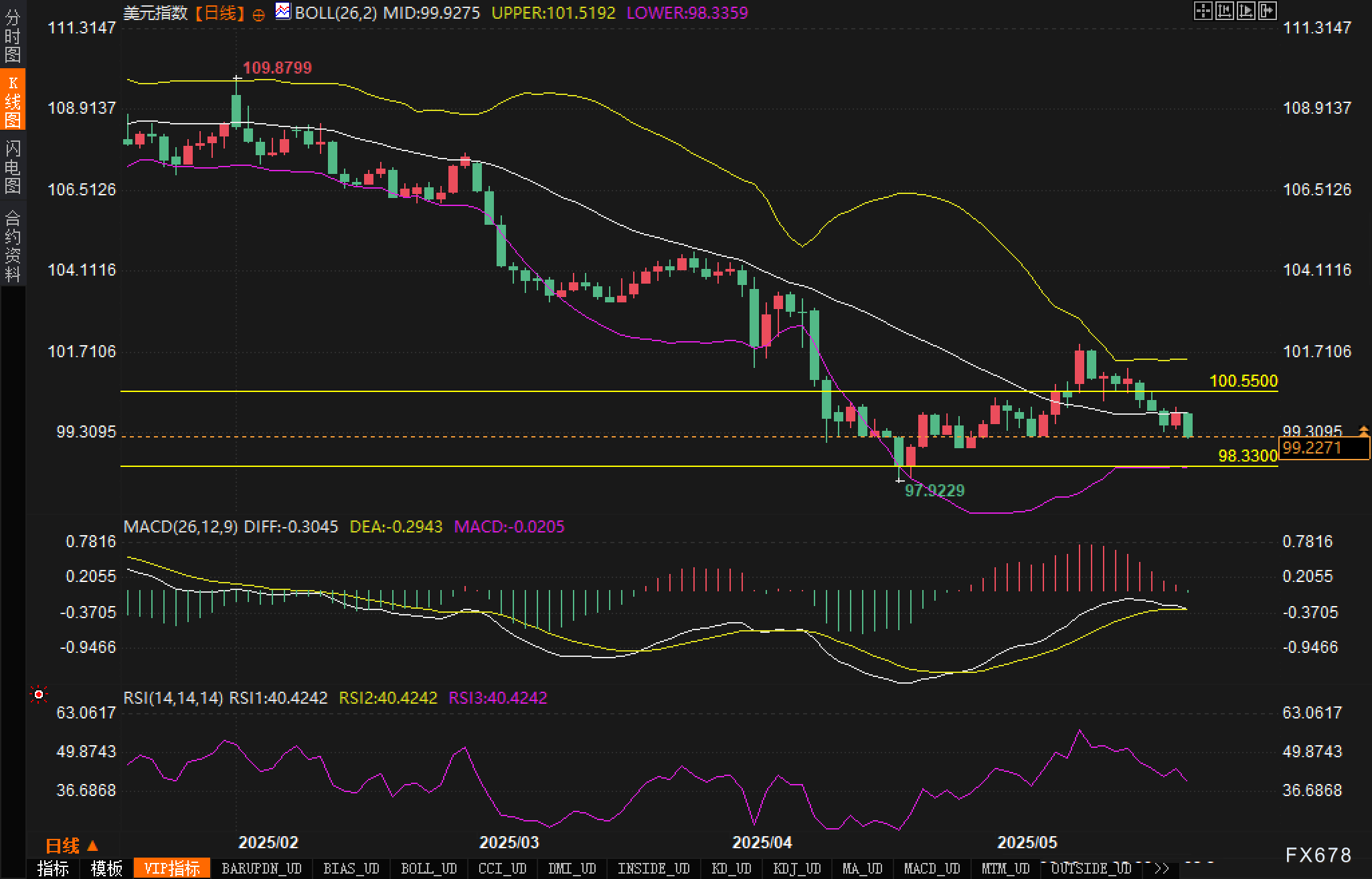 周五(5月23日),美元指数北美时段延续跌势,回吐前一交易日涨幅,交投于99.4附近。美国众议院通过特朗普提出的支出法案后,美元承压走低。据报道,无党派国会预算办公室披露,这项"宏大而美丽的法案"将在未来十年为联邦政府36.2万亿美元债务额外增加3.8万亿美元负担。债券市场对此深感忧虑,30年期美债收益率周四飙升至5.15%,较5月初的4.64%大幅攀升,创下自2023年12月底5.18%以来的一年多新高。市场担忧情绪升温可能进一步施压美元。 ![]() CME联邦基金利率期货显示,6月美联储会议降息概率仅为5.3%,7月30日会议降息概率亦仅为28.2%。美联储官员近期鹰派言论显著降低了短期降息预期,但这并未能支撑美元走势。10年期美债收益率回落至4.51%,较本周早些时候4.62%的峰值有所降温,但仍处于相对高位。 技术面: 美元指数日线图呈现明显的下降趋势特征。汇价自109.8799高位展开的调整已经演变为中期下跌趋势,目前正测试99.20附近的关键支撑区域。从K线形态分析,汇价连续跌破多个重要支撑位,包括此前的100整数关口,显示空头动能强劲。 ![]() 关键阻力位方面,100.5500构成首要阻力,这是前期跌破的重要关口,现已转化为阻力。突破该位置是缓解下行压力的必要条件。更高一层的阻力位于布林上轨101.5192,只有当汇价重新站稳101.5192上方,才能确认短期下跌趋势的结束。 市场情绪观察 债务担忧与贸易政策不确定性对美元形成双重利空,严重打击了美元多头的信心。尽管美联储维持相对鹰派立场,降息预期大幅降低,但这并未能提振美元。这种背离现象表明,市场更关注美国财政状况的恶化。技术指标全面走弱且尚未出现超卖信号,暗示空头仍占据主导地位。 从市场微观结构分析,期权市场数据显示,看跌期权的隐含波动率明显高于看涨期权,形成波动率偏斜,反映出市场对下行风险的担忧。大型机构投资者的持仓报告显示,美元净多头持仓连续减少,部分对冲基金甚至开始建立美元空头头寸。这种持仓结构的变化预示着美元可能面临进一步的抛售压力。 后市展望 短期内,美元指数料将维持弱势震荡格局。技术面显示,98.3300-98.3359区域构成关键支撑带,若该区域失守,可能触发加速下跌,目标直指97.9229甚至更低水平。但从技术角度看,连续大幅下跌后存在技术性反弹需求,特别是RSI指标接近40的相对低位,可能引发短线反弹。反弹目标位看向100.5500-101.5192区间,但预计反弹力度有限,更可能呈现弱势反弹后继续下探的走势。 国际因素同样不容忽视。欧洲央行可能在6月降息的预期正在减弱,欧元相对强势可能持续。日本央行政策正常化进程虽然缓慢但方向明确,日元的避险属性在全球不确定性增加的背景下更加突出。 风险因素方面,交易员关注以下几点:首先,30年期美债收益率的走势至关重要,若继续攀升突破5.20%,可能引发市场对美国财政可持续性的系统性担忧;其次,特朗普政府的贸易政策具有高度不确定性,任何超预期的关税措施都可能加剧市场动荡;第三,美联储官员讲话的基调变化,特别是对通胀和就业数据的解读,将直接影响货币政策预期;最后,地缘政治风险始终存在,任何突发事件都可能改变当前的市场格局。 注:本文基本面内容据路孚特报道展开。 ![]() |