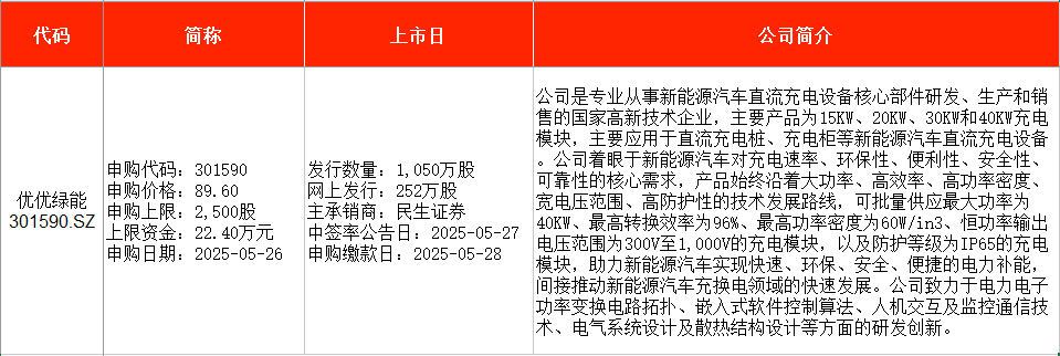 本周新股申购迎来“充电模块第一股”、全球智能影像设备行业领军企业,以及国铁集团、中国铁建、中国中铁等的供应商。 澎湃新闻根据Wind及公开信息梳理统计,本周(5月26日至5月30日),有3只新股安排申购。申购的新股分别为深圳市优优绿能股份有限公司(下称“优优绿能”,301590)、四川西南交大铁路发展股份有限公司(下称“交大铁发”)、影石创新科技股份有限公司(下称“影石创新”,688775)。 其中,优优绿能是国内新能源汽车充电模块领域的主要供应厂商之一。截至目前,公司已成为国内新能源汽车充电模块的核心供应商之一,与ABB、万帮数字、玖行能源、BTCPOWER、蔚来等下游头部企业建立了长期稳定的合作关系,被称为A股“充电模块第一股”。 交大铁发是一家专业从事轨道交通智能产品及装备的研发、生产、销售,并提供专业技术服务的高新技术企业,具体包括安全监测检测类产品、铁路信息化系统、新型材料、智能装备、测绘服务、运维服务、快速钢轨打磨车、三维激光雷达+视频监测技术等,客户群体主要为国铁集团、中国铁建、中国中铁及其关联方等。 影石创新则是全球领先的智能影像设备提供商,其品牌“Insta360影石”为全景相机市场占有率第一、运动相机市场第二。凭借先进的研发技术及产品优势,公司已成长为全球智能影像设备行业领军企业;据Frost&Sullivan数据,公司品牌“Insta360影石”全景相机全球市占率连续6年第一、2023年高达67.2%;而运动相机领域,公司在2023年Frost & Sullivan全球排行榜中位列第二。 此外,港股方面,A股调味品龙头佛山市海天调味食品股份有限公司(下称“海天味业”)通过港交所聆讯。 ![]() 一、本周新股申购 从时间表看,优优绿能在周一(5月26日)申购,影石创新则在周五(5月30日)申购。 ![]() 据华金证券研报,优优绿能是国内新能源汽车充电模块领域的主要供应厂商之一。公司深耕新能源汽车充电模块近10年,坚持高功率密度、大功率直流输出的技术方向,陆续于2015年、2016年、2017年、2020年推出15KW、20KW、30KW、40KW充电模块,并启动了60KW大功率液冷充电模块的开发,是行业内较早推出上述功率等级产品的一线充电模块厂商之一。 伴随着下游新能源汽车行业对充电速率需求的提升,优优绿能40KW充电模块迅速导入市场,其收入占比由2022年的3.47%增至2024年的49.51%,带领公司经营稳定向好。截至目前,公司已成为国内新能源汽车充电模块的核心供应商之一,与ABB、万帮数字、玖行能源、BTCPOWER、蔚来等下游头部企业建立了长期稳定的合作关系。 在核心客户中,国际电气行业巨头ABB、充电站运营行业头部企业万帮数字还分别持有优优绿能7.8%、2.67%的股权份额,充分彰显对公司未来发展及双方合作的信心。据招股书推测,2023年公司在中国大陆充电模块市场的占有率达10.58%。同时,公司积极布局小功率直流充电产品、V2G产品和储能充电产品等;截至目前,上述新产品已处于小批量应用阶段。 根据业务的相似性,华金证券选取特锐德、盛弘股份、通合科技、英可瑞为优优绿能的可比上市公司。从上述可比公司来看,2024年度可比公司的平均收入为49.68亿元,平均PE-TTM(剔除异常值及负值/算数平均)为23.80X,平均销售毛利率为28.19%;相较而言,公司营收规模未及同业平均,但销售毛利率处于同业的中高位区间。 ![]() 据开源证券研报,交大铁发是一家专业从事轨道交通智能产品及装备的研发、生产、销售,并提供专业技术服务的高新技术企业,具体包括安全监测检测类产品、铁路信息化系统、新型材料、智能装备、测绘服务、运维服务、快速钢轨打磨车、三维激光雷达+视频监测技术等。公司安全监测检测类产品中的“高速铁路道岔监测系统”被认定为 2016 年度四川省重大技术装备国内首台(套)产品。 公司的毛利率、净利率水平总体稳定。交大铁发形成了“直销”的销售模式、“以产定购、合理库存”的采购模式以及“以销定产”的生产模式,客户群体主要为国铁集团、中国铁建、中国中铁及其关联方等。 ![]() 据华金证券研报,影石创新是全球领先的智能影像设备提供商,其品牌“Insta360影石”为全景相机市场占有率第一、运动相机市场第二。公司长期深耕全景技术领域,逐步形成了全景图像采集和拼接技术、全景防抖技术、全景数据处理技术等核心技术,并持续强化核心技术在公司产品的应用及迭代;发展期间公司陆续推出了Nano系列、ONE系列、ONEX系列、ONER系列、GO系列和Ace系列等消费级智能影像设备主要产品以及Pro系列、TITAN系列、Connect系列等专业级智能影像设备主要产品,且单系列产品通常在1-2年内进行新一代产品升级。 凭借先进的研发技术及产品优势,影石创新已成长为全球智能影像设备行业领军企业;据Frost&Sullivan数据,公司品牌“Insta360影石”全景相机全球市占率连续6年第一、2023年高达67.2%;而运动相机领域,公司在2023年Frost & Sullivan全球排行榜中位列第二。 预期随着技术及算力的不断成熟、应用场景的持续拓展,以全景相机、运动相机为代表的智能影像设备需求或将稳步抬升;截至2024年底,影石创新智能影像设备生产基地建设项目已完成基建工程,计划于2025年投入使用。 同时,影石创新正积极开拓VR看房、全景新闻直播、全景安防、视频会议和机器人全景视觉等新应用领域。据招股书披露,公司将以消费端智能影像产