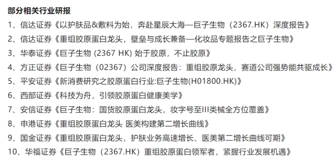 今日,巨子生物开盘跌超8%,截至上午收盘,巨子生物股价跌幅为3.52%,市值跌破800亿港元。据悉,近日美妆博主“大嘴博士”质疑,从巨子生物花高价购买的重组胶原蛋白精华竟然测不出重组胶原蛋白,认为其涉嫌严重造假。 ![]() 5月24日晚,巨子生物旗下品牌可复美回应称,针对所谓“巨子生物涉嫌严重造假”“重组胶原测不到”等不实指控,公司予以严正驳斥并坚决否认。据悉,巨子生物实控人为西北大学副校长范代娣。 此外,近日还有多家券商研报遭声讨,也牵涉到了巨子生物。 巨子生物旗下产品被质疑 巨子生物遭遇的最新攻击来自美妆行业大V“大嘴博士”,后者质疑巨子生物旗下品牌可复美产品中重组胶原蛋白“含量过低”。 5月24日,“大嘴博士”在其公众号“大嘴博士颜究所”发文《巨子生物疑似造假?!重组胶原竟然测不到胶原!》,称其通过HPLC高效液相色谱氨基酸定量法检测巨子生物旗下一款名为“可复美重组胶原蛋白肌御修护次抛精华”,检测结果显示重组胶原蛋白含量仅0.0177%。该款产品的配方设计显示,胶原蛋白在成分表中排名靠前,不是微量成分,而按照我国化妆品标签标识规范要求,凡标注为“非微量添加”的成分,其添加量必须高于0.1%。 据此,“大嘴博士”认为,巨子生物的该款产品胶原蛋白含量过低,未达到0.1%以上,并非宣传的主要成分,而只是微量成分。 ![]() 面对这一“指控”,巨子生物旗下品牌“可复美”5月24日晚间发布声明表示:公司第一时间对相关产品进行检测,多批次检测结果胶原蛋白含量均大于0.1%,与网传的“0.0177%添加量”严重不符。此外,“可复美”称为进一步打消消费者疑虑,公司已委托多家第三方检测机构对相关产品采用多种检测方法进行检测,检测结果出炉后将第一时间公布。 西北大学副校长范代娣控股巨子生物 从履历来看,范代娣今年59岁,其自华东理工大学生物工程系博士毕业后,即进入西北大学工作,历任化工学院副院长、院长。2025年4月,其出任西北大学党委委员、常委、副校长。而其丈夫严建亚今年也是59岁,本科毕业于西北大学化工系。目前,范代娣及严建亚控股巨子生物。 巨子生物于2022年在港股上市,范代娣夫妇通过juzi holding持股56.5%。 巨子生物是中国重组胶原蛋白领域的龙头企业,其产品矩阵以重组胶原蛋白和稀有人参皂苷为核心技术,覆盖功效性护肤品、医用敷料、医疗器械及功能性食品三大领域。 其中,核心品牌可复美主打医用敷料和术后修复,代表性产品包括重组胶原蛋白敷料、修护次抛精华、光奕精华霜等,覆盖皮肤修护、抗敏、祛痘等功能。可丽金则定位中高端抗衰老市场,产品包括抗皱精华霜、赋能次抛精华等。目前,巨子生物产品已经进入1700家公立医院、3000家私立医院及诊所、650家OTC以及6000家CS/KA(化妆品专卖店/重点客户)门店。 2024年,可复美创收45.4亿元,同比高增长62.9%,其中核心大单品“胶原棒”在2024年双十一中,蝉联天猫面部精华、液体精华及修复精华类目TOP1,同时登顶抖音液体精华类目TOP1,市场头部地位稳固;可丽金创收8.4亿元,同比增长36.3%;其他品牌1.4亿元,同比增长34%。 2019年至2024年,巨子生物营收从9亿元暴涨至55亿元,5年5倍多,同期净利润也从5.5亿元增至20.6亿元,扩张速度惊人。 巨子生物所处的重组胶原蛋白、医美及功能性护肤品领域,被戏称为“女人的茅台”,有三大特点:其一是毛利率超高,几家可比上市公司的毛利率都在70%—90%,巨子生物的毛利率也高达82%;其二是更适合女性创业,业内头部公司的创始人,包括爱美客的简军、华熙生物的赵燕、锦波生物的杨霞等,都是女性;其三是容易出女巨富,包括范代娣和上述三位女企业家均跻身2024年新财富500创富榜,范代娣如今更成为陕西首富。 不过,需要提醒的是,尽管巨子生物业绩高增长,并坐拥高毛利,但近年却频频融资。2022年其IPO之时,以每股22.46港元发行2600万股,融资5.84亿港元;2024年5月,其通过配售发行3322万股,每股发行价为49.2港元,融资16.41亿港元;2025年4月,其又一次推出配售计划,拟发行3500万股,配售价格也升至66.65港元/股,预计融资23.33亿港元。 多家券商研报遭声讨,牵涉巨子生物 5月17日深夜23点41分,华熙生物在其官方微信公众号发布《概念总在重演,科技永远向前》文章,驳斥市场流行的透明质酸“过时”“不安全”等言论,并将矛头指向了另一新兴概念——重组胶原蛋白。 ![]() 华熙生物在文中表示,玻尿酸产业在近几年资本市场的概念切换中遭遇了谎言与践踏,被描述为“过时”“不如某物质安全”“不如某物质更具生物活性”“不如某物质具备市场价值”。而2022年开始,随着资本市场不断追求新的公司题材,重组胶原蛋白概念被看似幸运地选中了。 “透明质酸过时的谎言从何而来?”华熙生物直接“点名”10篇研报,共涉及9家券商,包括信达证券、华泰证券、方正证券、平安证券、西部证券、安信证券、申港证券、国金证券、华福证券。 值得注意的是,华熙生物提及的10篇行业研报,无一例外指向了医美行业的另一巨头——“重组胶原蛋白第一股”巨子生物。 以华熙生物援引的华泰证券《巨子生物(2367.HK)始于胶原,不止胶原》为例,该研报提到“与玻尿酸相比,重组胶原蛋白具有更多生物学特征,在美白、抗衰、再生、修复等领域具有更加多样化的应用场景”;“相较于玻尿酸有潜在交联剂残留‘馒化脸’的风险,