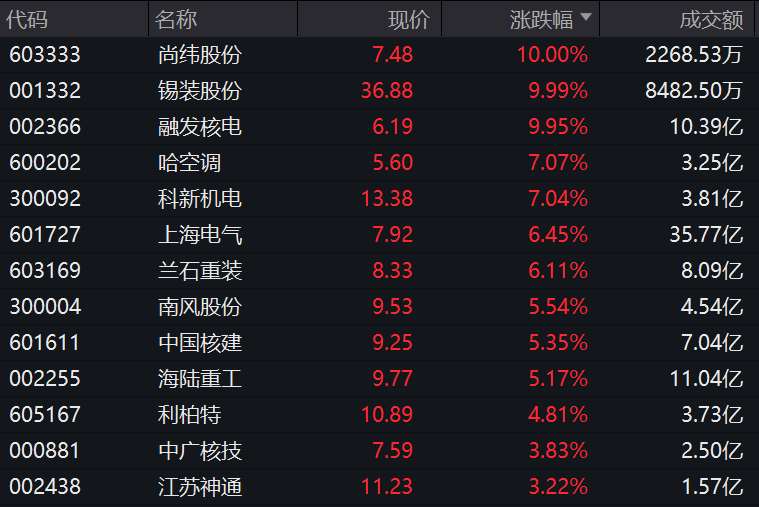 港股中核国际涨幅扩大至70%,公司为中核集团旗下唯一海外铀资源运作平台。 相关报道 国际投行发声 核电领域或迎十年黄金期 绩优概念股一览 高盛研报表示,核电迎十年黄金周期。 5月26日,市场早间震荡调整,创业板指跌超1%。可控核聚变概念反复活跃,IP经济概念股再度走强;医药医疗股集体调整,汽车整车、大金融、航运港口等板块领跌。 *ST赛隆(002898)涨停,走出6连板,6个交易日累计涨幅达34.04%。连续涨停的背后是公司正在筹划易主。如交易顺利进行,海南雅亿共赢科技合伙企业(有限合伙)(以下简称“海南雅亿”)将成为公司控股股东。由于目前海南雅亿无实际控制人,故*ST赛隆将变更为无实际控制人。 值得一提的是,海南雅亿成立于5月15日,系为参与本次交易而设立的投资平台。虽然无实际控制人,但海南雅亿背后的合伙人“隐现”立白集团创始人之一陈凯臣的长子陈展生、港股上市公司企展控股(01808.HK)的身影。 核电板块拉升 核电板块早盘拉升,尚纬股份、锡装股份、融发核电涨停,哈空调、上海电气、中国核建等股跟涨。 ![]() 消息面上,据央视新闻报道,当地时间23日,美国总统特朗普签署了一系列有关核能的行政命令,计划在2030年前启动10座大型核电站建设,并在2050年前将美国核电产能翻四倍。新政令给核监管委员会设定了18个月的新反应堆审批期限,同时呼吁能源和国防部门为开发反应堆提供便利。 高盛最新研报指出,核电迎来十年黄金周期,铀矿市场迎来结构性短缺时代。当前全球铀矿供应体系面临严峻挑战。一方面,许多现有矿山已经运营超过30年,资源日益枯竭;另一方面,多个新建项目投产周期较长,如NexGen能源的Rook I矿预计需要6至8年才能投入生产,无法满足日益增长的需求。全球铀矿市场正走向一个结构性短缺时代。这一趋势将于2025年开始加速,到2040年全球铀矿缺口将达1.3亿磅。同时核电需求在AI时代激增,全球核电装机潮迎来全面爆发。 核电概念股机构关注度较高 据证券时报·数据宝统计,A股中,核电概念股超30只,年内股价平均上涨8.03%。其中,国光电气年内股价涨幅居首,累计上涨116.29%;南风股份、应流股份、纽威股份年内股价累计上涨幅度居前,均超30%。 中国核电、中国广核、上海电气的市值规模居前,均超千亿元。其中中国核电的市值规模居首,公司一季度核电业务板块营收同比增长10.46%,增加约16亿元;归母净利润同比增长11.52%,增长约3亿元。 5月以来,核电板块的机构关注度较高,11股获得机构调研。安泰科技月内获得20家机构调研,公司是国内第一家具备聚变钨铜偏滤器生产能力的公司,具备从原材料到部件交付的全套技术,研制和生产过程在公司内部形成闭环,已实现钨铜偏滤器、钨铜限制器、包层第一壁、钨硼中子屏蔽材料等全系列涉钨产品的研发和生产。2025年,公司将继续加大可控核聚变产业研究,持续优化聚变产品核心技术,提升行业竞争优势。 中核科技月内获得11家机构调研。公司表示,目前公司核电在手订单近30亿元。大概分布在三澳 1、2 号机组,三门 3、4 号机组,徐大堡一期1、2 号机组,陆丰 1、2 号机组等项目。新签核电订单主要分布在江苏徐圩核能供热发电厂一期工程、中国核动力研究设计院医用同位素试验堆、福清核电核能供汽项目、惠州太平岭二期等项目。 从资金面来看,5月以来多只核电概念股获得杠杆资金加仓,其中沃尔核材月内获杠杆资金净买入1.92亿元;还有安泰科技、川仪股份、上海电气、东方锆业的杠杆资金净流入金额居前。 从今年一季度业绩来看,核电概念股中,10只概念股单季净利润超亿元,且较2024年同期实现增长。 上海电气的净利润规模同比呈现翻倍,公司一季度营业总收入222.45亿元,同比上升8.06%,归母净利润2.92亿元,同比上升145.69%。2024年年报数据显示,在核电领域,公司共承接核岛主设备39台、常规岛设备2台套,顺利出产核岛主设备31台、常规岛设备1台套;累计完工交付31台套核岛主设备。 此外,沃尔核材、纽威股份、东方电气的一季度净利润规模增幅居前,均超27%。 ![]() (文章来源:财联社) |