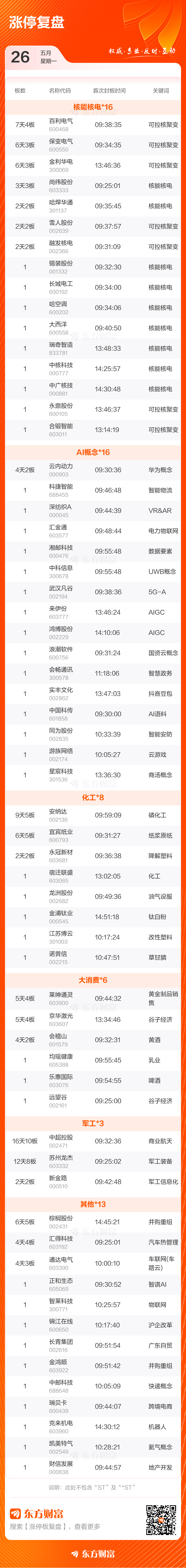 今天沪指跌0.05%,深成指跌0.41%,创业板指跌0.8%,今日大盘成交额1.01万亿,较上个交易日缩量1456.29亿。 涨停个股数量方面,今日共计85股涨停,另有35只个股盘中一度触及涨停,封板率70.83%。 ![]() 个股方面 ![]() 免责声明:本文基于AI生产,仅供参考,不构成任何投资建议,据此操作风险自担。 (文章来源:东方财富研究中心) |