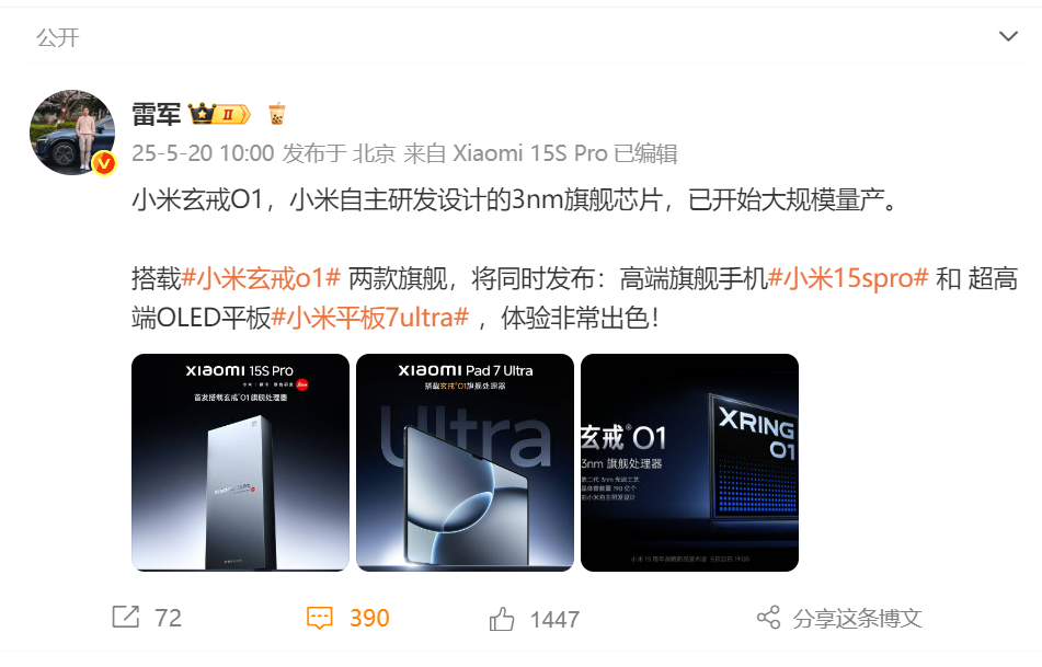 5月26日晚间,小米公司发布《小米15周年产品答网友问(第2集)》。 关于网传玄戒O1是否是向Arm定制的芯片,小米公司表示,不是。这完全是谣言,玄戒O1不是向Arm定制的,研发过程中,也没有采用Arm CSS服务。 玄戒O1是小米玄戒团队,历时四年多自主研发设计的3nm旗舰SoC,其中基于Arm最新的CPU、GPU 标准IP授权,但多核及访存系统级设计、后端物理实现完全由玄戒团队自主设计完成,并非网传采用Arm提供的完整解决方案,所谓“向Arm定制芯片”更是违背事实的无稽之谈。 小米玄戒O1的CPU超大核心,最高主频达到3.9GHz,这远超业界标准设计。能够取得如此成绩,是玄戒团队诸多创新和数百次版图迭代优化的结果。 5月20日,小米集团董事长雷军在微博发文称,小米玄戒O1,小米自主研发设计的3nm旗舰芯片,已开始大规模量产。 ![]() 图片来源:雷军微博 5月19日,小米集团创始人雷军发布微博回顾小米“造芯”之旅,同时抛下一枚重磅炸弹:小米玄戒O1采用第二代3nm工艺制程,比此前业界猜测的7nm、4nm先进了一大截。 振芯荟联合创始人张彬磊告诉《每日经济新闻》记者,芯片制程技术对于手机芯片性能至关重要,从28nm的智能手机芯片到5G手机的7nm及以下制程芯片,每一代技术的进步都带来了显著的性能提升。 为何花费高昂代价追赶高阶工艺?在业内看来,对小米自身来说,拿下3nm将增加其与芯片供应厂商谈判的筹码。战略层面,自研芯片为小米提供了应对供应链风险的备选方案,同时也是对抗被贴上“依赖进口”标签的一种防御措施。 不过,从产品销量和市占率的角度看,这一决策预计短期影响不大,未来代工能力仍是制约关键。一旦这一瓶颈得以突破,小米芯片团队积累的经验就更能派上用场。此外,随着5G手机的普及和未来6G通信技术的迭代,先进的制程工艺成为手机芯片的关键,小米的选择给后续优化留出了空间,也避免了重复劳动。 从成功流片的企业名录来看3nm的地位——小米是继苹果、高通、联发科之后,全球第四家发布自主研发设计3nm制程手机处理器芯片的企业。 从投入成本上看,设计28nm芯片的平均成本为4000万美元;7nm芯片的成本约为2.17亿美元;5nm为4.16亿美元;3nm芯片整体设计和开发费用则接近10亿美元。为了这颗芯片,截至今年4月底,小米已经在研发上砸了135亿元。雷军还称,目前相关研发团队规模已经超过了2500人,今年预计研发投入将超过60亿元。 雷军这样形容小米的付出:“这个体量,在目前国内半导体设计领域,无论是研发投入,还是团队规模,都排在行业前三。如果没有巨大的决心和勇气,如果没有足够的研发投入和技术实力,玄戒走不到今天。”但他也坦言,面对同行在芯片方面的积累,小米芯片也只能算刚刚开始。 (文章来源:每日经济新闻) |