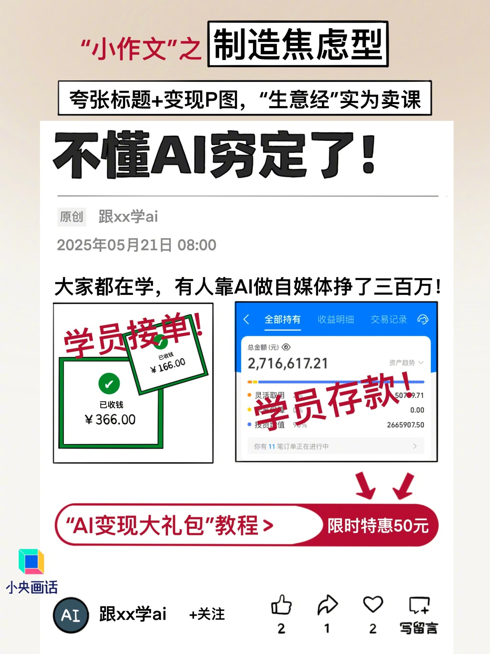 写着“x部门最新内幕消息”的聊天截图、分享自己被坑的“维权长文”、被“压热度”的“现场视频”……在社交平台上,不少图文并茂的“小作文”凭借“真凭实据”,迅速吸引无数人的眼球。当人们为它们投入“真情实感”时,却不知已成为“商战”的一环。为治理“小作文”乱象,近年来,监管部门用大数据追踪、锁定造谣者;平台加强对AI生成内容的审核并封禁造谣账号;法律的处罚力度也在加大,比如编传“小作文”构成犯罪可追究刑事责任等。无论“小作文”如何动人,但“假的真不了”,胡编乱造的“小作文”只能换来虚假的流量,要在市场上长久立足还得“真心换真心”。 ![]() ![]() ![]() ![]() ![]() ![]() ![]() (文章来源:央视网) |