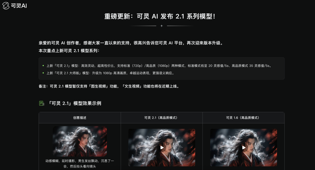 5月29日,快手可灵AI宣布推出可灵2.1系列模型,包括标准、高品质两种模式及大师版。针对此前用户吐槽的生成等待久、费用高等问题,可灵2.1进行了调整,标准模式下生成5秒视频仅需20“灵感值”,高品质模式生成5秒视 ...