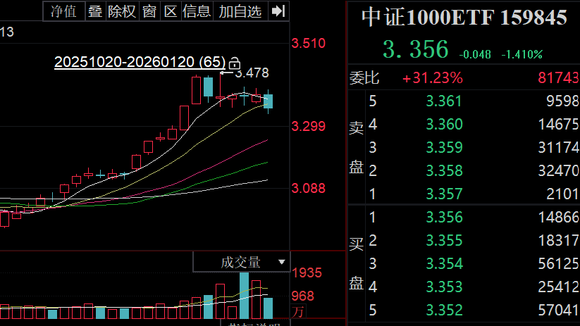 1月20日,A股三大指数集体下跌,其中沪指下跌0.35%。截止11:05,中证1000ETF(159845.